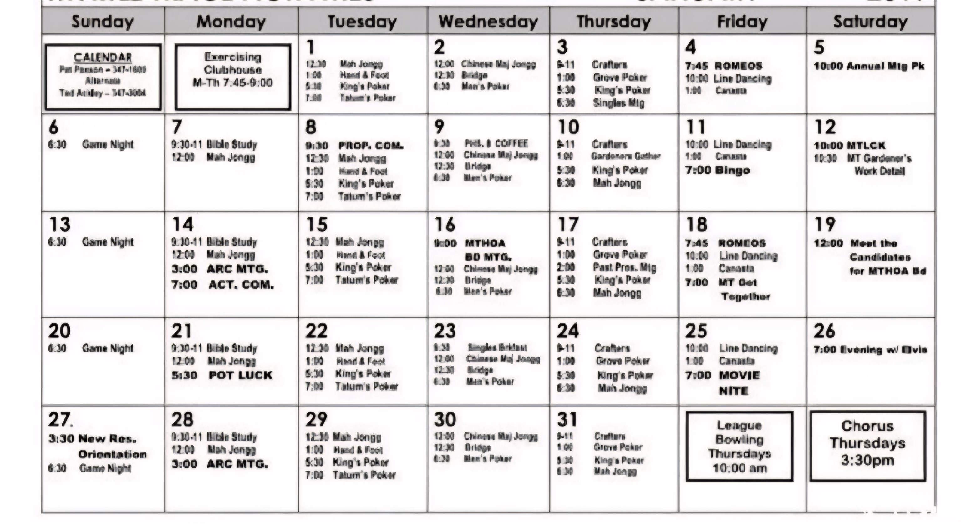 Electric Common, Pool Service, Common Maint/Repair, Recreation Facilities, Legal and Accounting