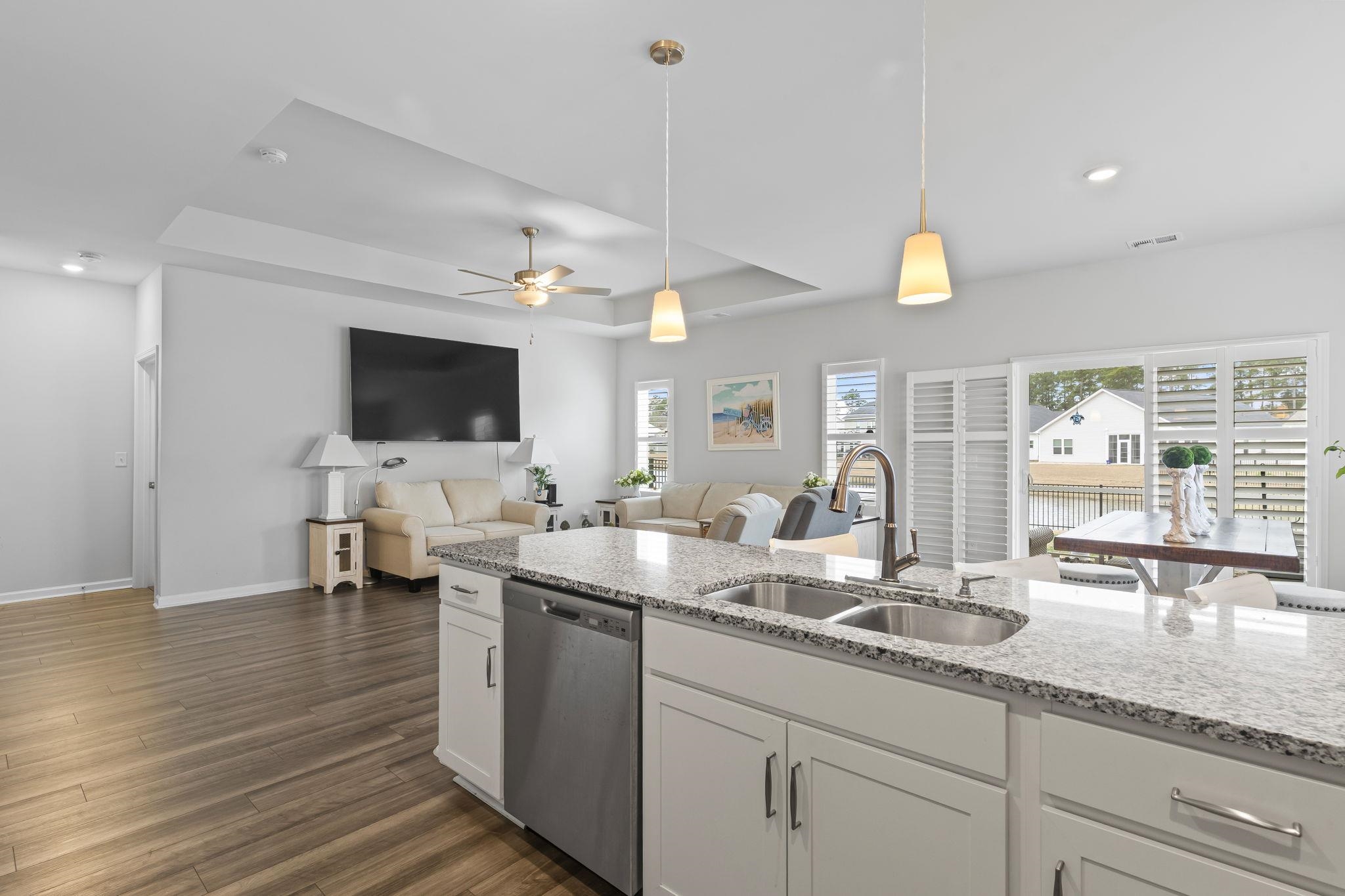 Welcome to Lyden Village! Built in 2023, this move-in ready 3-bedroom, 2-bath home offers stylish, low-maintenance living with beautiful pond views. Step inside to an open-concept floor plan featuring a spacious living area, abundant natural light, and a kitchen with granite countertops, stainless steel appliances, a large island, and a Samsung Bespoke refrigerator. This home also features a fenced-in backyard, perfect for pets and added privacy. Enjoy year-round relaxation in the screened in porch, or unwind after a long day in your private jacuzzi while taking in the water views. Ideally situated just minutes from shopping and dining, and approximately 10 miles from both the Atlantic Ocean and Myrtle Beach International Airport. Conveniently located near popular destinations like Ocean Lakes and Lakewood Campground