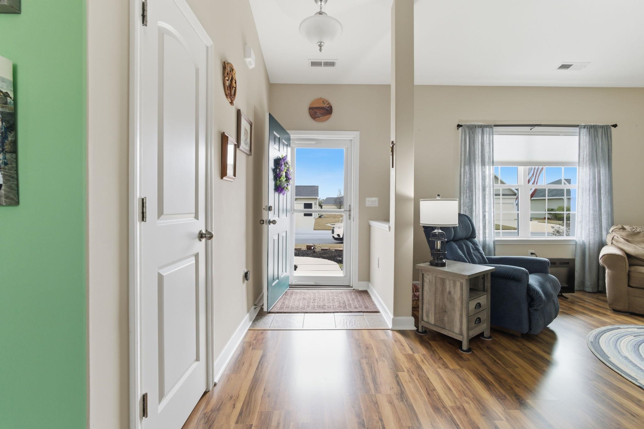 Welcome to 340 Oak Crest Circle, a beautifully maintained ranch-style patio home located in the desirable Myrtle Lakes North community, offering comfort, thoughtful upgrades, and easy coastal living just minutes from North Myrtle Beach. This well-cared-for home features major system updates, including a new roof in 2019, water heater replaced in 2022, and HVAC installed in 2023 by One Hour Heating & Cooling, providing peace of mind for years to come. Additional upgrades include a retaining wall redone in 2024, electric SunSetter awning (2016), front and back storm doors, gutters with gutter guards, TAEX in-wall pest control system, sprinkler system, and a whole-house power surge protector at the main electrical box. The washer and dryer convey, making this home truly move-in ready. Step onto the inviting covered front porch with mulch and paver landscaping, and enter through the storm door into a tile foyer. The spacious living room offers laminate flooring, vaulted ceilings, and a ceiling fan, flowing seamlessly into the dining area and kitchen—perfect for entertaining or everyday living. The kitchen features ample cabinetry and counter space, black appliances, a corner pantry, kitchen island, garbage disposal, and vaulted ceilings that enhance the open feel. The back door includes built-in blinds and a storm door, leading to a wooden back porch with an electric awning, ideal for relaxing outdoors. The split-bedroom layout provides privacy and functionality. The guest bedroom features carpet flooring, a closet, and a rear-facing window. The hallway guest bathroom includes a tub/shower combo, vanity, toilet, and linen closet. The third bedroom also offers carpet flooring and a closet. The spacious primary suite includes tray ceilings, a ceiling fan, plush carpet, a large walk-in closet, and an en-suite bathroom with double-sink vanity, soaking tub, separate glass-enclosed shower, and linoleum flooring. The laundry room is generously sized with a window and Samsung washer and dryer. The attached two-car garage features concrete flooring, shelving, and pull-down attic stairs for extra storage. Located in Myrtle Lakes North, residents enjoy low HOA fees, sidewalks, a community pool with sun deck, and a peaceful neighborhood atmosphere. Situated just 15 minutes from Cherry Grove Beach, and close to Highway 9, shopping, dining, golf, and entertainment, this home offers the perfect balance of quiet living and coastal convenience. Homes like this don’t last schedule your private showing today and see why 340 Oak Crest Circle is the perfect place to call home.
