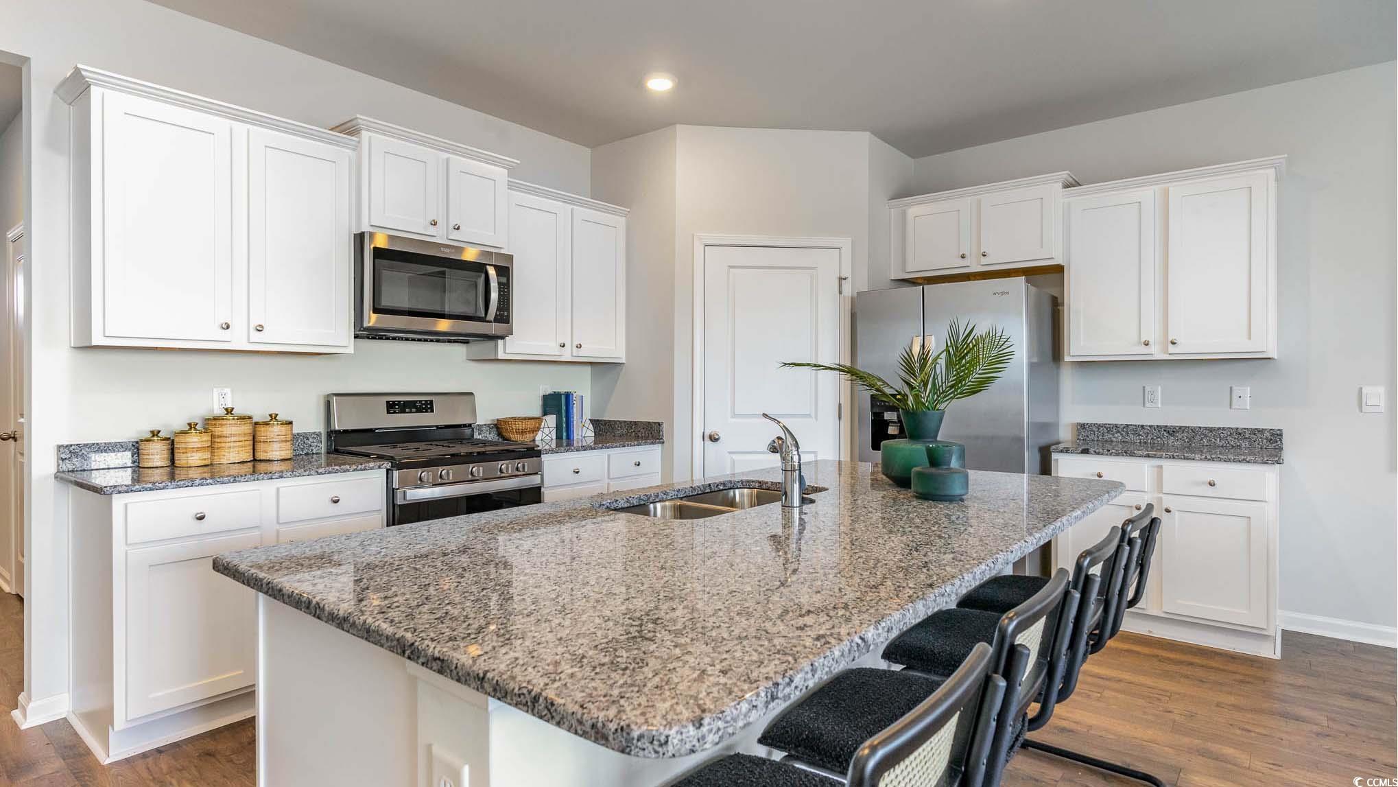 Harper Meadows, a vibrant new home community perfectly positioned in Loris, SC — just minutes from Conway, Little River, and North Myrtle Beach. Enjoy the peace and charm of Loris while staying close to the area’s best shopping, dining, golf courses, and beautiful beaches. This thoughtfully designed one level home is one of our most popular floor plans! With an open concept living room, dining room and kitchen, this home is bright, spacious, and designed for entertaining guest or comfortably interacting with family. The kitchen features granite countertops, 36" cabinets, a walk in corner pantry, stainless steel appliances including the refrigerator, and island with breakfast bar! Your primary suite awaits off the back of the home with a spacious walk-in closet and master bath with double sinks, a linen closet and 5' shower. Three secondary bedrooms are at the front of the home providing separation from the primary suite. Enjoy the coastal air from the back porch as you wind down in the evening! 2 car garage with garage door opener. This is America's Smart Home! Each of our homes comes with an industry leading smart home technology package that will allow you to control the thermostat, front door light and lock, and video doorbell from your smartphone. *Photos are of a similar Cali home. Pictures, photographs, colors, features, and sizes are for illustration purposes only and will vary from the homes as built. Home and community information, including pricing, included features, terms, availability and amenities, are subject to change and prior sale at any time without notice or obligation. Square footage dimensions are approximate. Equal housing opportunity builder.