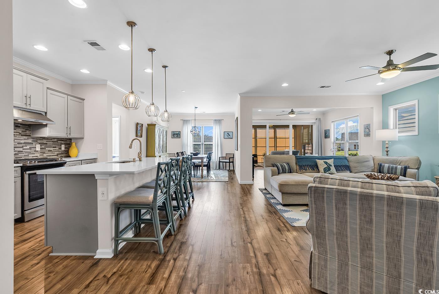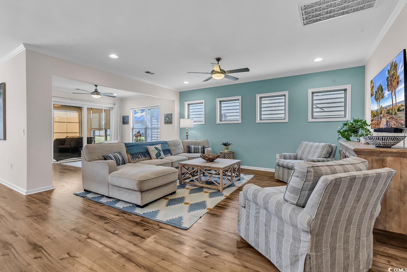 Welcome to 6376 Cascata Drive FULLY FURNISHED home in the prestigious Del Webb at Grande Dunes active 55+ community where luxury, comfort, and coastal living come together. This beautifully maintained home features an open concept design with high ceilings, abundant natural light, and upscale finishes throughout. The gourmet kitchen offers quartz countertops, stainless steel appliances, and a large island perfect for entertaining. The spacious primary suite includes a walk-in closet and a spa-inspired bath. The home has permanent hurricane shutters, a generator, irrigation system and a water filtration system. Enjoy peaceful mornings or relaxing evenings on the screened lanai overlooking a beautifully landscaped backyard. As part of the sought-after Grande Dunes community, residents enjoy access to world-class amenities including the Ocean Club, fitness center, pools, tennis, and miles of walking trails. Del Webb is a community that blends resort-style living with the charm of the Carolina coast — just minutes from shopping, dining, golf, and the beach.