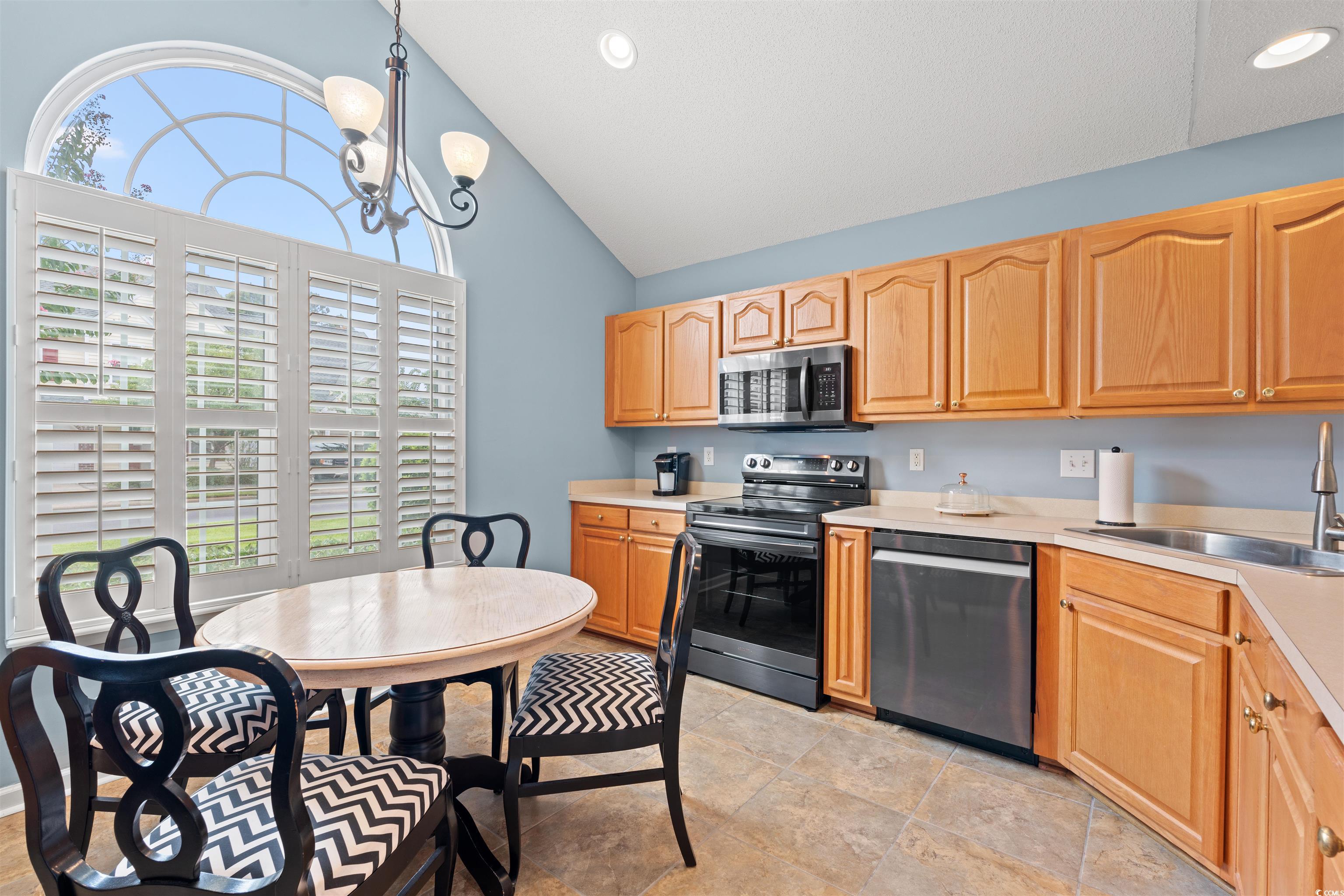 Extremely well maintained 3BDR/2BTH Townhome. Only one owner-never rented. Master bedroom/bath on 1st floor. Plantation shutters in kitchen, dining and living area. New microwave and stove 7/25. Electronic air purification system installed 12/19. Wall in upstairs loft bedroom can be easily converted and enclosed. The attached 1 car garage has extra driveway parking available, brick trim, maintenance-free vinyl siding. Conveniently located to Lowe's Food, Publix, Walmart and the Seafood Capital of SC...all just minutes away. For the golfer there's lots of golf courses to choose from like TPC, Indigo Creek and many more. HOA includes water, sewer, basic cable, garbage, exterior building insurance, outdoor pest control, termite bond, outdoor pool. Measurements are approximate and can be verified by owner.