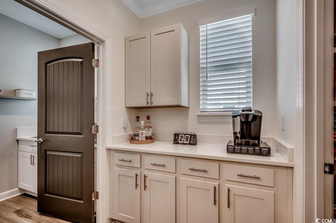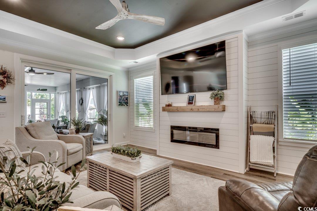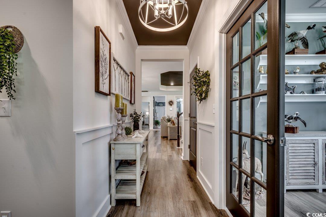 So many upgrades in this gorgeous home in Bridgewater in Little River. This great house shows like a model and offers a nice floor plan including an added large heated and cooled sunroom with EZ breeze windows that acts as den, 4 bedrooms (primary and another bedroom on first floor) plus a study and a loft area, open kitchen, great room, butlers pantry/bar area, large laundry room with cabinets/sink/counter space, lots of storage, and a huge pantry with custom shelving. Upgrades and features include crown molding, custom trim, two beautiful electric fireplaces with shiplap, custom built desk in study, custom paint in every room, upgraded LVP flooring, gorgeous kitchen, large island, high end stainless steel appliances, double oven, tile backsplash, nice fixtures throughout., large primary suite, tray ceilings, double sinks, custom mirrors, tile shower with glass doors, and a large walk in closet, All the upgrades continue outside of this gorgeous home with custom Bahama shutters, curbscaping, tropical landscaping, palm trees, pavers, patio, concrete, outdoor landscape lighting, whole home Generac generator, whole home water filtration system, tankless on demand water heater, 2 1/2 car garage, and an updated alarm system. Great location in the neighborhood, close (but not too close) to the amenities center. Bridgewater has so much to offer including a 5000 square foot clubhouse, state of the art fitness center, resort style pool surrounded by cabanas, huge open area perfect for community events, pickleball court, kayak launch, outdoor grills and cooking area, large and small dog park, and a playground. All this and just a short distance to the Cherry Grove section of North Myrtle Beach.