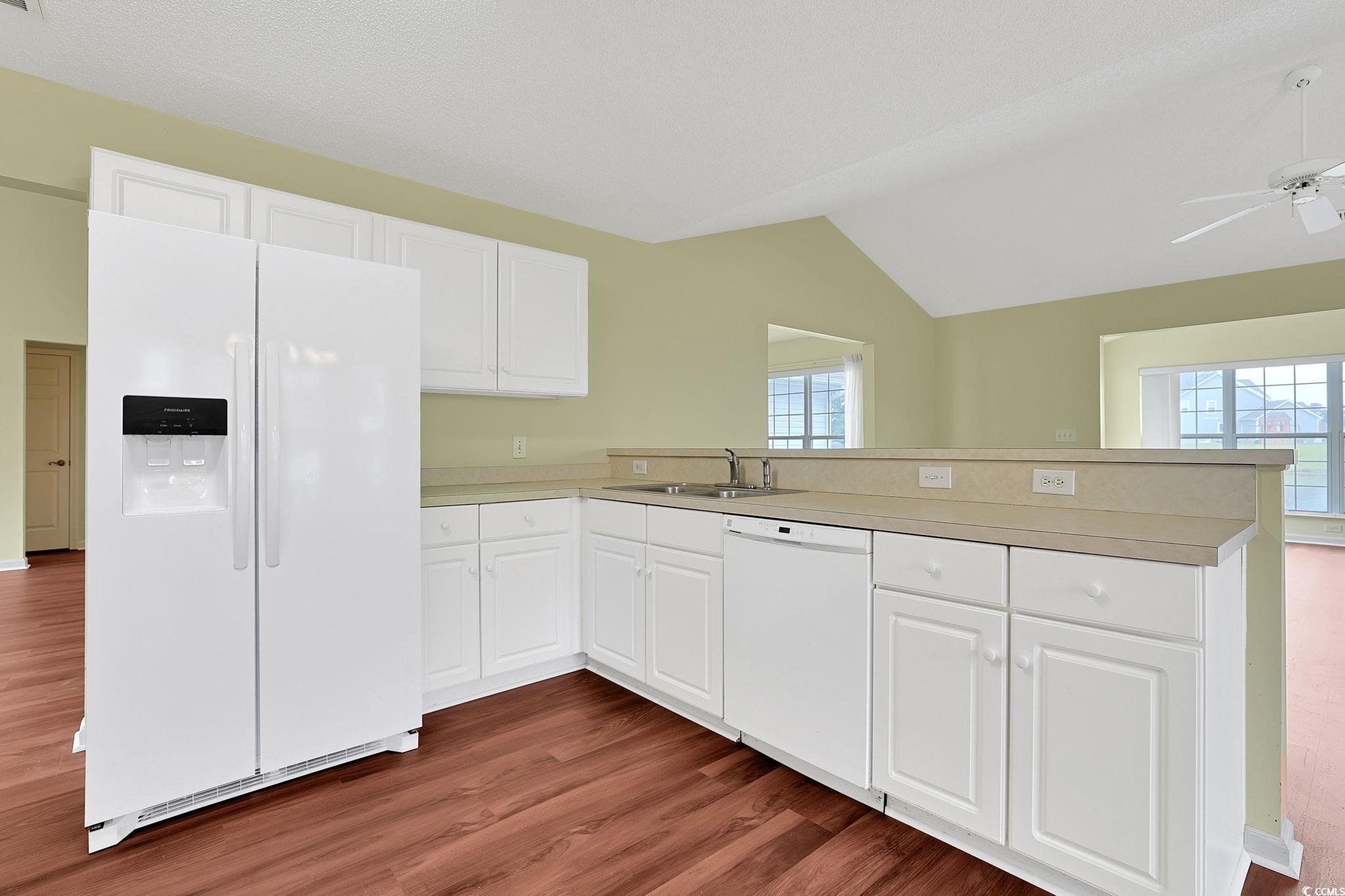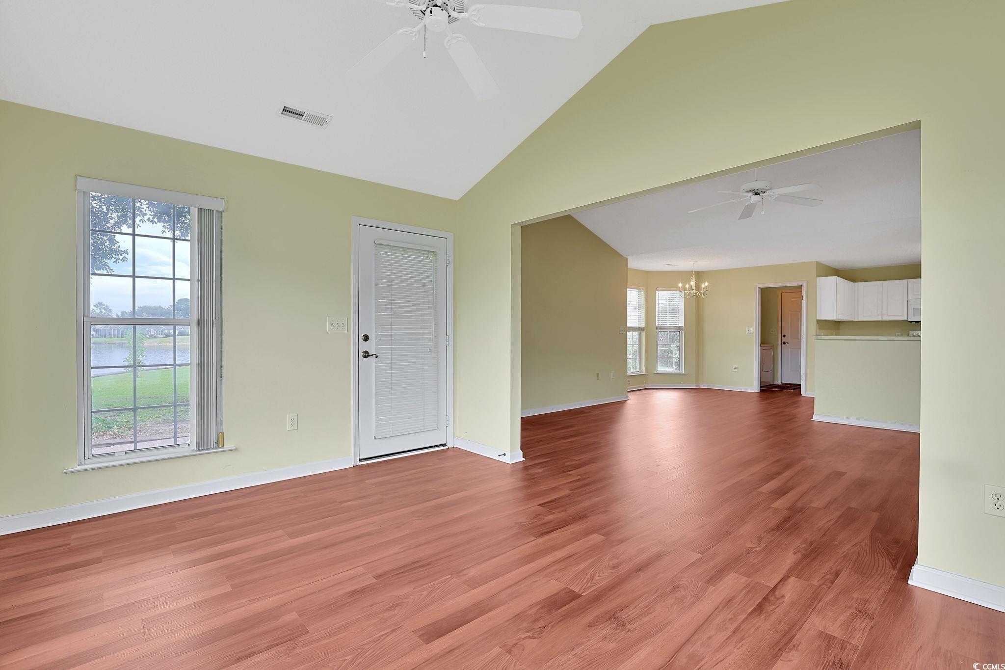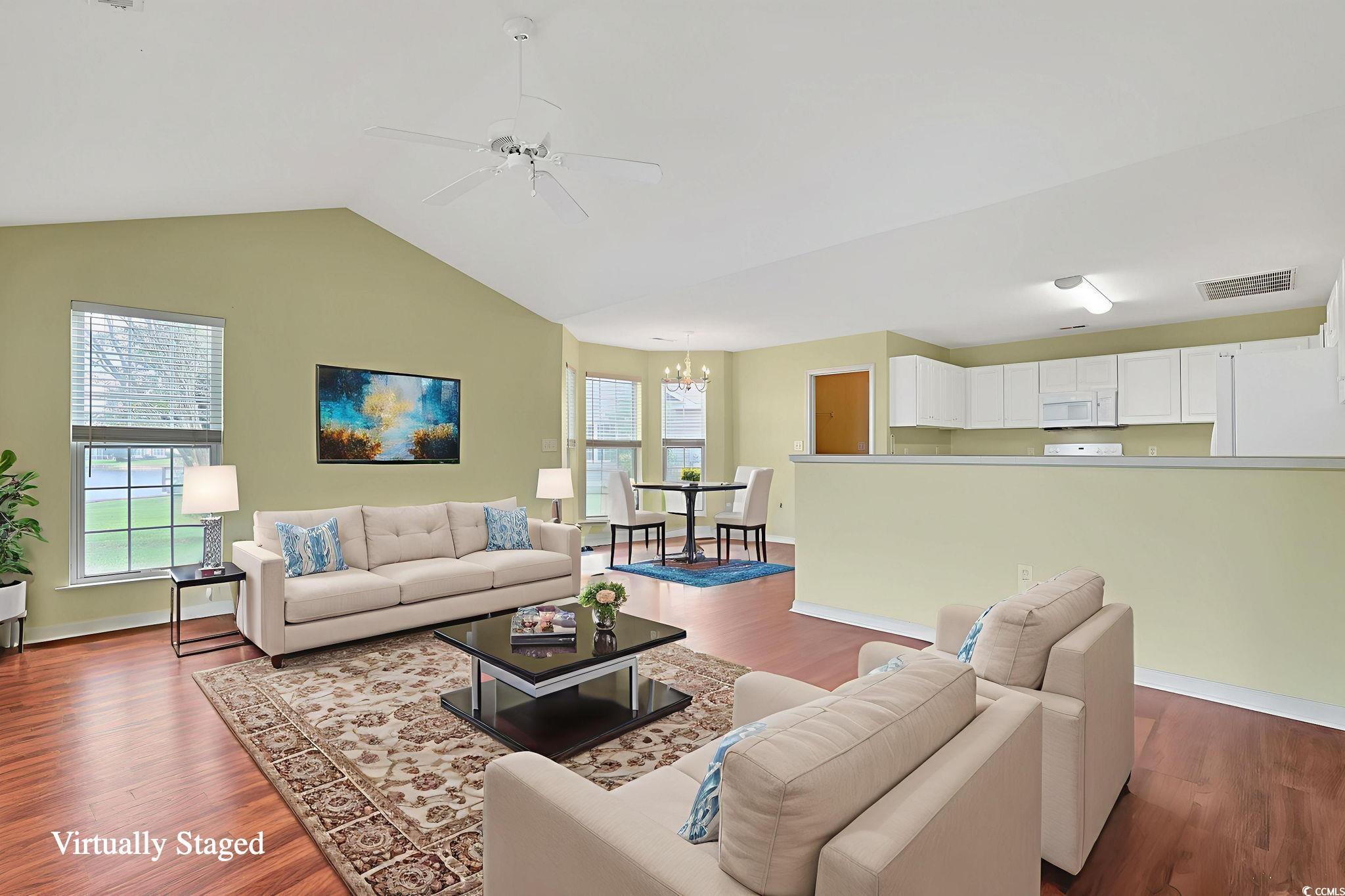 Introducing this vibrant 3 bedroom 2 bath home located in the popular Southwood community. This captivating home features wood look LVP, tile, & carpet flooring, a formal dining area with a palladium window and chair railing, an inviting family room, a comfortable Carolina room with access to the back patio, a large vaulted ceiling living room showcasing tranquil lake views. The kitchen is equipped with a white on white appliance package, a breakfast bar, ample counter top & cabinet spaces, and a sunlit breakfast nook. The primary bedroom offers a vaulted ceiling with a fan, a window filled bump out, private access to the primary bath that hosts a dual sink vanity, a comfort station with a pony wall, a garden tub, a step-in shower, and a large walk-in closet. This delightful home is completed with two additional bedrooms, full guest bath, a laundry room, and a two car attached garage. This home affords you easy access to the beach and golfing along with all of the other activities and happenings in Myrtle Beach including fun eateries, award winning off-Broadway shows, public fishing piers, and intriguing shopping adventures along the Grand Strand. Conveniently located to your everyday needs, including grocery stores, banks, post offices, medical centers, doctors’ offices, and pharmacies. Check out our state of the art 3-D Virtual Tour. Some photos have been virtually staged.