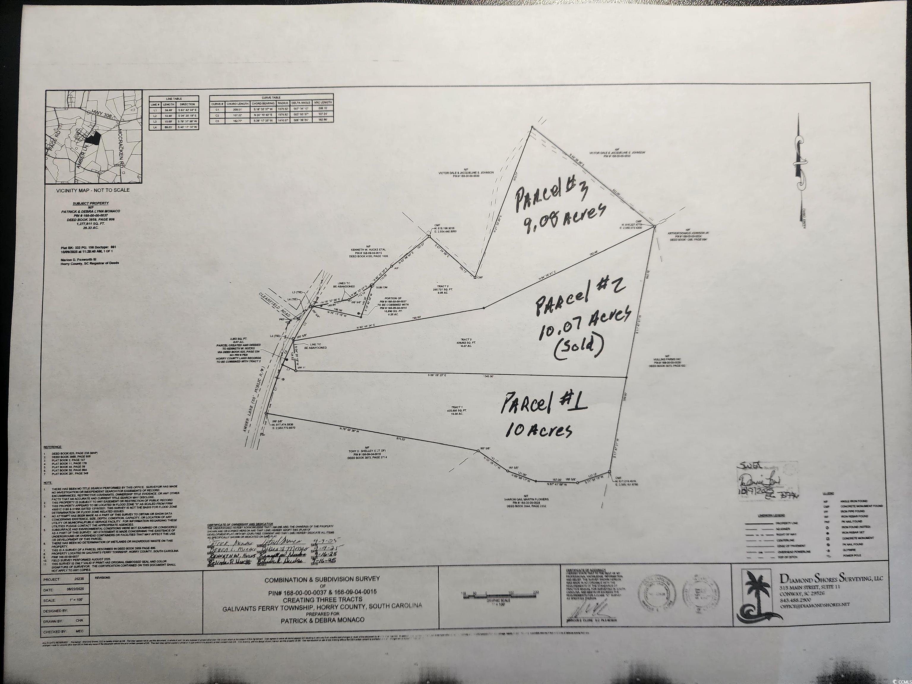 Galivants Ferry, SC - Approximately 29.33 acres of vacant, wooded land off Amber Lane in Galivants Ferry, SC. Zoned "FA" for forest, agriculture, low density residential or farming, or rezone, subdivide it, and develop it, or Land Bank it! Land prices are rising! Well and Septic tank required. Land previously "perc'd" but certificate will have to be renewed. Located in Flood Zone "X" for minimal flooding risk. ***Sellers are willing to subdivide into 2 parcels of 10 acres each, and 1 parcel of 9.33 acres (see proposed subdivision in pictures) (subdivision is at buyer's expense).*** Don't delay, call today!