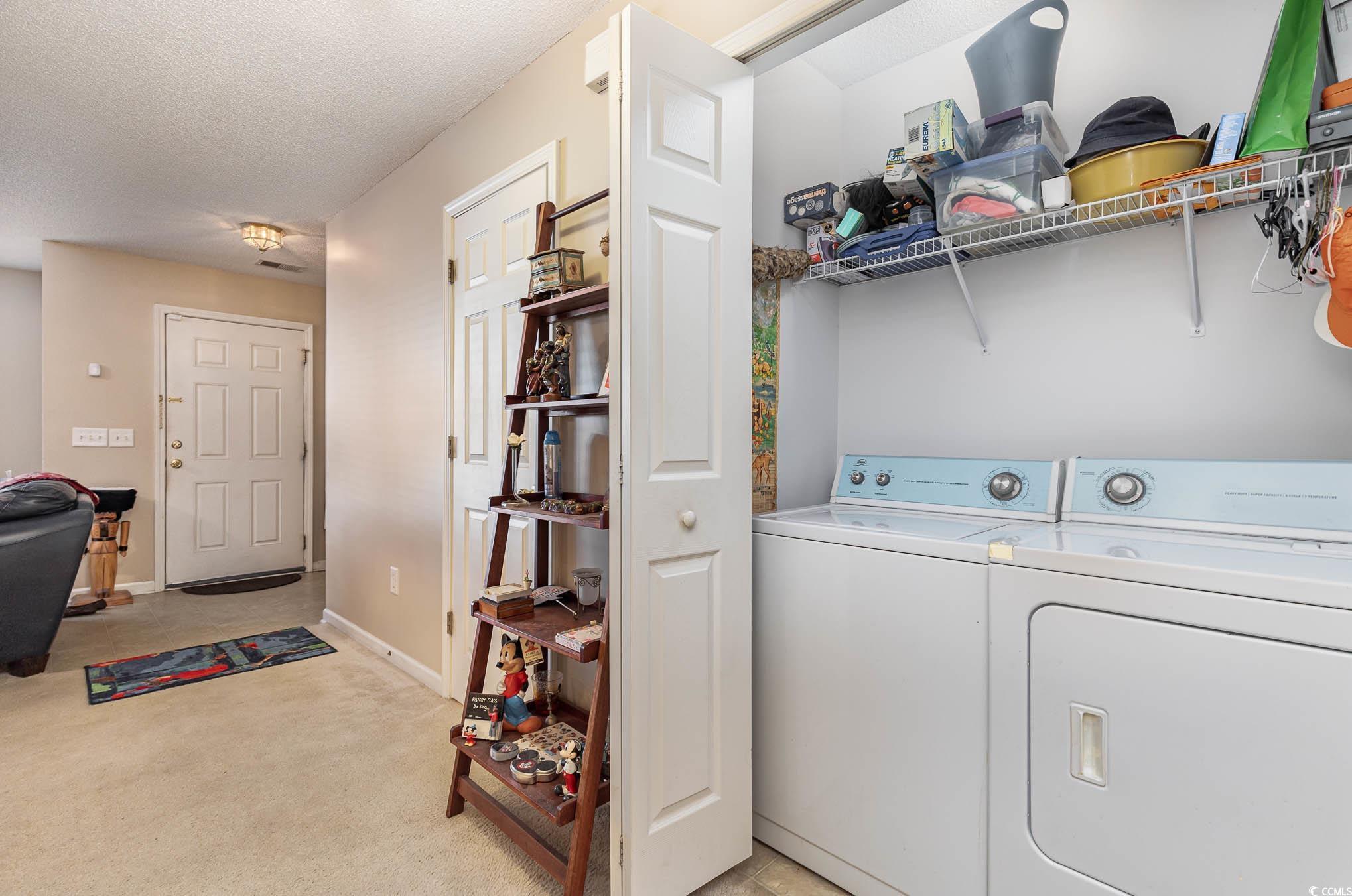 Welcome to this two-bedroom, two-and-a-half bathroom townhome in the Sawgrass East community, located in the sought after Carolina Forest area of Myrtle Beach! Inside the townhome, you will find a fully equipped kitchen with plenty of countertop and cabinet space, perfect for all your cooking needs. The dining area provides the ideal setting for enjoying meals and hosting gatherings with family and friends. The large open living area creates an inviting atmosphere and is set up for both relaxing and entertaining. With the convenience of a half bathroom the main level, you'll enjoy added privacy for your residents and guests, making this townhome even more inviting. Upstairs, you will find two spacious bedrooms with plenty of plenty closet space for storage. Both bedrooms have their own private bathroom. There is also a rear porch that overlooks the trees, offering a serene and peaceful spot to enjoy the view. Sawgrass East also has a community pool and clubhouse for residents and guests to enjoy. The community is also conveniently located near some of the Myrtle Beach's finest dining, shopping, golf, and entertainment options. This townhome would make a great forever home, vacation spot, or investment property. Don't wait, schedule your showing today!