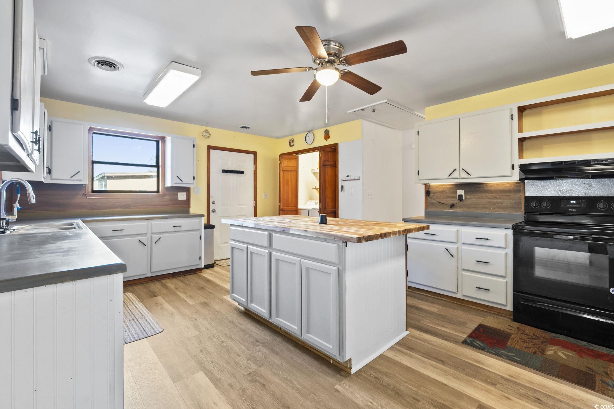 Range, Work Island, Refrigerator, Microwave, Pantry, Stainless Steel Apps., Solid Surface Countertops