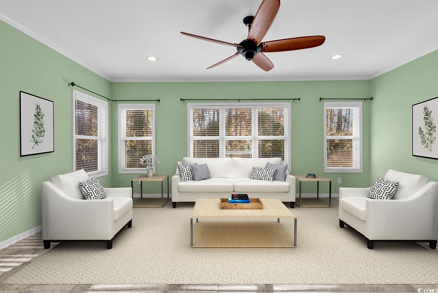 SOME PHOTOS HAVE BEEN VIRTUALLY STAGED!! Welcome to 208 Myrtle Grande Drive, located in the esteemed 55+ community of Myrtle Trace Grande. This immaculate Eaton "B" model home offers a perfect blend of modern comfort and sophisticated design. The property boasts charming curb appeal that creates an inviting atmosphere consistent throughout the interior. Meticulously maintained landscaping, paired with attractive curbscaping, enhances the home's welcoming presence. Upon entering this splendid residence, you are greeted by a spacious and functional open floor plan. The great room is a cozy retreat, featuring a fireplace, ceiling fan, built-in shelving, hardwood flooring, and crown molding, all contributing to an atmosphere perfect for relaxation and social gatherings. The well-appointed kitchen is a culinary enthusiast’s dream, complete with tile flooring, stainless steel appliances, upgraded cabinetry, a stylish backsplash, and a pantry. The breakfast nook has been thoughtfully extended by four feet, providing a comfortable area for dining. The primary suite is distinguished by a tray ceiling, crown molding, a generous walk-in closet, and large windows that fill the space with natural light. The primary bathroom features tile flooring, a walk-in shower, a double vanity, and a transom window that illuminates the area with sunlight. The remaining two bedrooms and a full bathroom are strategically located toward the front of the home, ensuring privacy and separation. Each bedroom is generously sized and equipped with ceiling fans for enhanced comfort. A notable feature of this home is the charming 14 x 20 Carolina Room, conveniently located adjacent to the great room. This versatile space is characterized by a wall of glass and doors, making it an ideal setting for relaxation or entertaining guests, with many possibilities. The laundry facilities have been relocated to the garage, and the former laundry room has been transformed into a butler's pantry outfitted with cabinetry and counter space. Stepping outside to the fenced backyard reveals a tranquil oasis featuring a patio that accommodates plenty of seating and grilling opportunities. During the summer months, residents can enjoy a picturesque backyard adorned with a diverse array of plants. This residence is not only aesthetically pleasing but also features thoughtful upgrades, HVAC replaced in 2017, roof/soffit replaced in 2023, backsplash in kitchen, marazzi tile, sola tub in kitchen, a rented propane tank for the fireplace, an owned propane tank for the range, hardwood flooring, crown molding, fenced back yard, and numerous additional enhancements. When the home was built, the front bedroom was extended by 2', and the garage was extended by 3'. Residents of Myrtle Trace Grande enjoy access to community amenities such as a pool and hot tub, with a variety of activities scheduled throughout the year, allowing individuals to engage as much or as little as they choose. Additionally, the community’s location is just a short drive from Conway Medical Center, various medical offices, Walmart, Coastal Carolina University, golf courses, and Tanger Outlets. Furthermore, Myrtle Trace Grande is conveniently situated near historic Conway and all that Myrtle Beach has to offer, including easy access to the beach.
