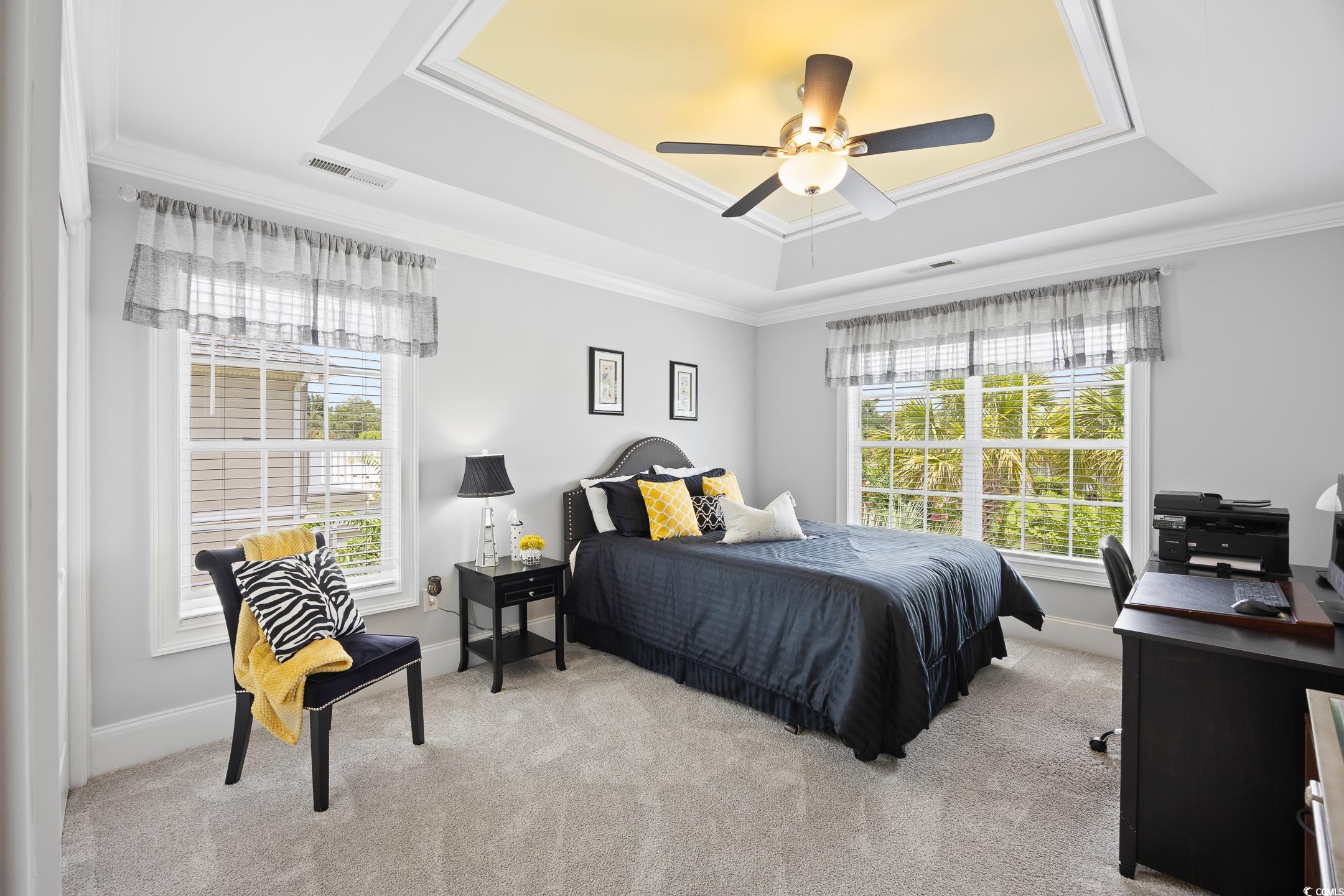 This will be your forever home! Pride of ownership shows in this 4 bedroom, 2 full bathrooms and 2 1/2 baths 2 car oversized garage immaculate home located in the highly desirable Inter Coastal Gated Community of Carolina Waterway Plantation located in the Carolina Forest area. Gorgeous open floor plan with spacious kitchen and storage for all your cooking needs with 42" custom cabinets with crown molding, granite countertops, center work island, breakfast bar to seat 10, large eating area, stainless steel appliances, ceramic tile, backsplash and walk-in pantry. The family / Living Room has a Massive wall of windows that lets in an abundance of natural light. Crown molding, Tray ceilings, custom shiplap and custom woodwork throughout the home. There is tons of storage throughout the home and 3 ceiling mounted storage racks in the garage. There is a security system that includes 12 outside and 2 inside Hitech cameras located all around the house and speakers in each room on first floor. The Master Bedroom and Bath are located on the first floor and feature's his and her walk-in closets, his and hers vanities, large tile walk-in shower and Jacuzzi tub. There is a double sided fireplace that can be enjoyed from the family/Livingroom and kitchen. There is a large laundry room with wall cabinets for storage. Customized window treatments and central vac throughout. There are 2 large bedrooms and 1 full bath with a double vanity and shower tub combo on the 2nd floor for plenty of privacy. The Carolina room has Ezy Breeze windows, screens and a mini split system for heat and AC so you can enjoy it all year. This home will not disappoint you and will make your list of dream homes. Home also has Hurricane shutters. The best parts of the property is the magnificent backyard that has been professionally transformed to be your very own private oasis and has plenty of mature trees, +/- 3 foot stonewall surrounds back yard, lighting, 6 zone irrigation, plants, paver deck, stone flower beds, a massive stone fireplace, and a beautiful view of the lake with a water Fountain. The private backyard is the perfect place to entertain your friend. Carolina Waterway is centrally located to Championship Golf, Myrtle Beach Airport (7 Min away), Hwy 501,31 and business 17, Fine dining, Shopping, Broadway at the Beach, Hospitals, and of course the beautiful Beaches, and much much more the Grand Strand has to offer. Carolina Waterway Plantation is a beautiful Intracoastal Waterway Community with a very nice clubhouse, pool, lighted tennis courts, pickleball court, playground area and boat storage and access to the Waterway.