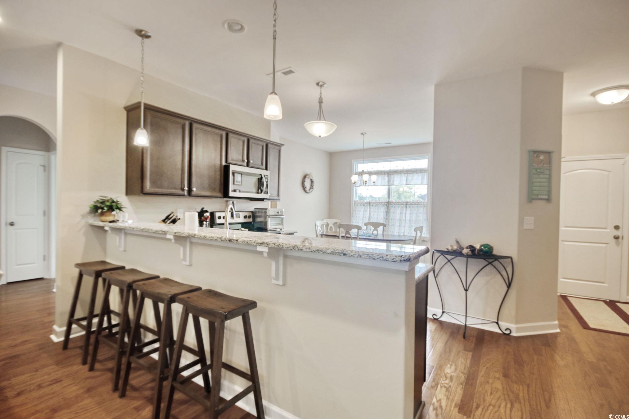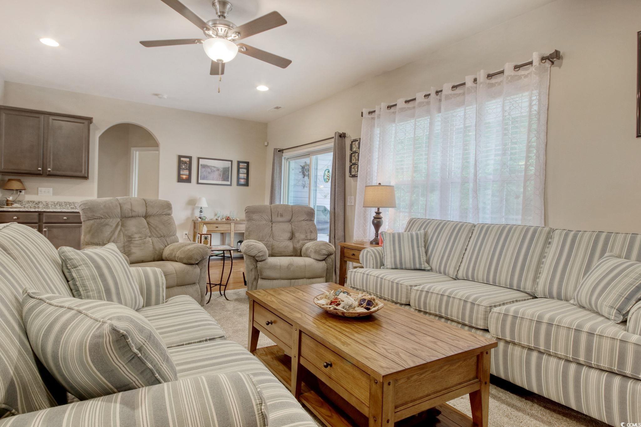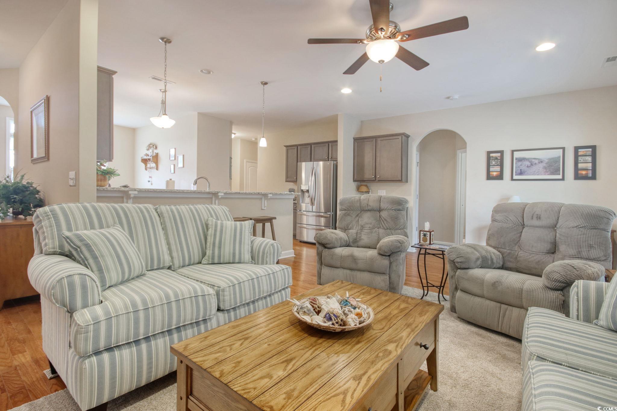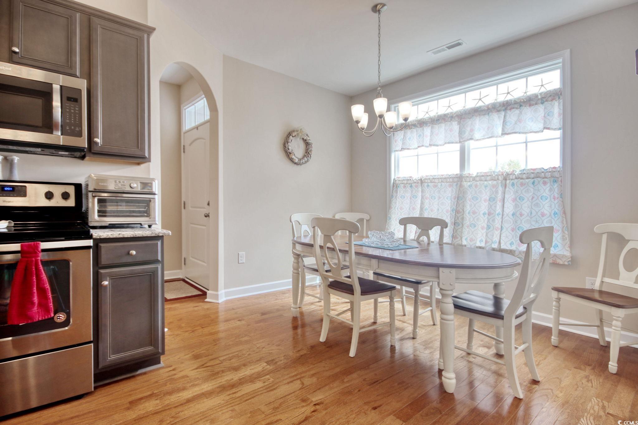 Looking for a move-in ready home that feels practically brand new? This gently used second home is waiting for you—tucked away on a private lot that backs up to trees for extra peace and privacy. This spacious Sheffield model offers 1,979 heated sq. ft., plus a versatile bonus room and tons of upgrades throughout. The kitchen shines with granite countertops and tile flooring, while the great room features beautiful hardwood floors. You’ll love the primary suite with its tray ceiling, ceiling fan, dual vanities, comfort-height toilets, and large tiled shower. Step outside and enjoy the natural setting of your wooded backyard, or take advantage of the community pool at Arbor Glen. Best of all—you’re less than 15 minutes from shopping, dining, hospitals, and, of course, the beach! This home has been meticulously cared for and is ready for its new owner. Come see it for yourself—you won’t want to leave!