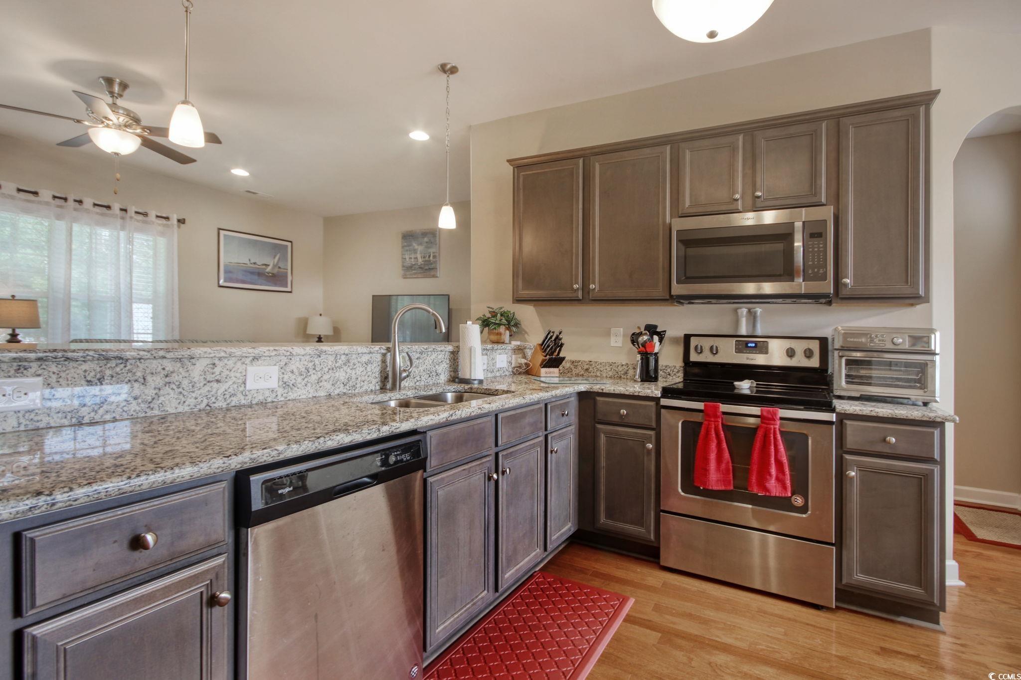 Range, Dishwasher, Garbage Disposal, Microwave, Breakfast Bar, Pantry, Breakfast Nook, Stainless Steel Apps., Solid Surface Countertops
