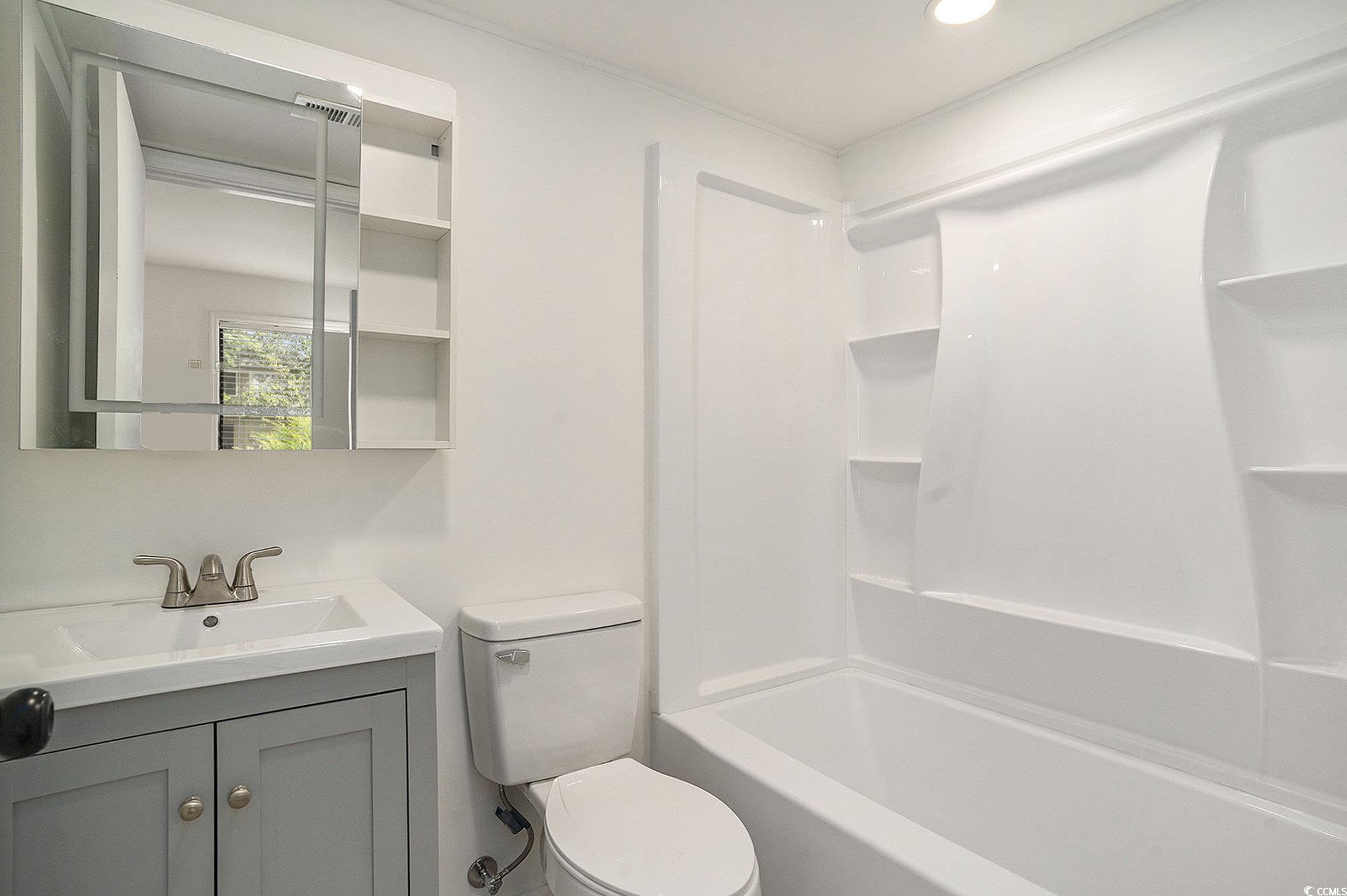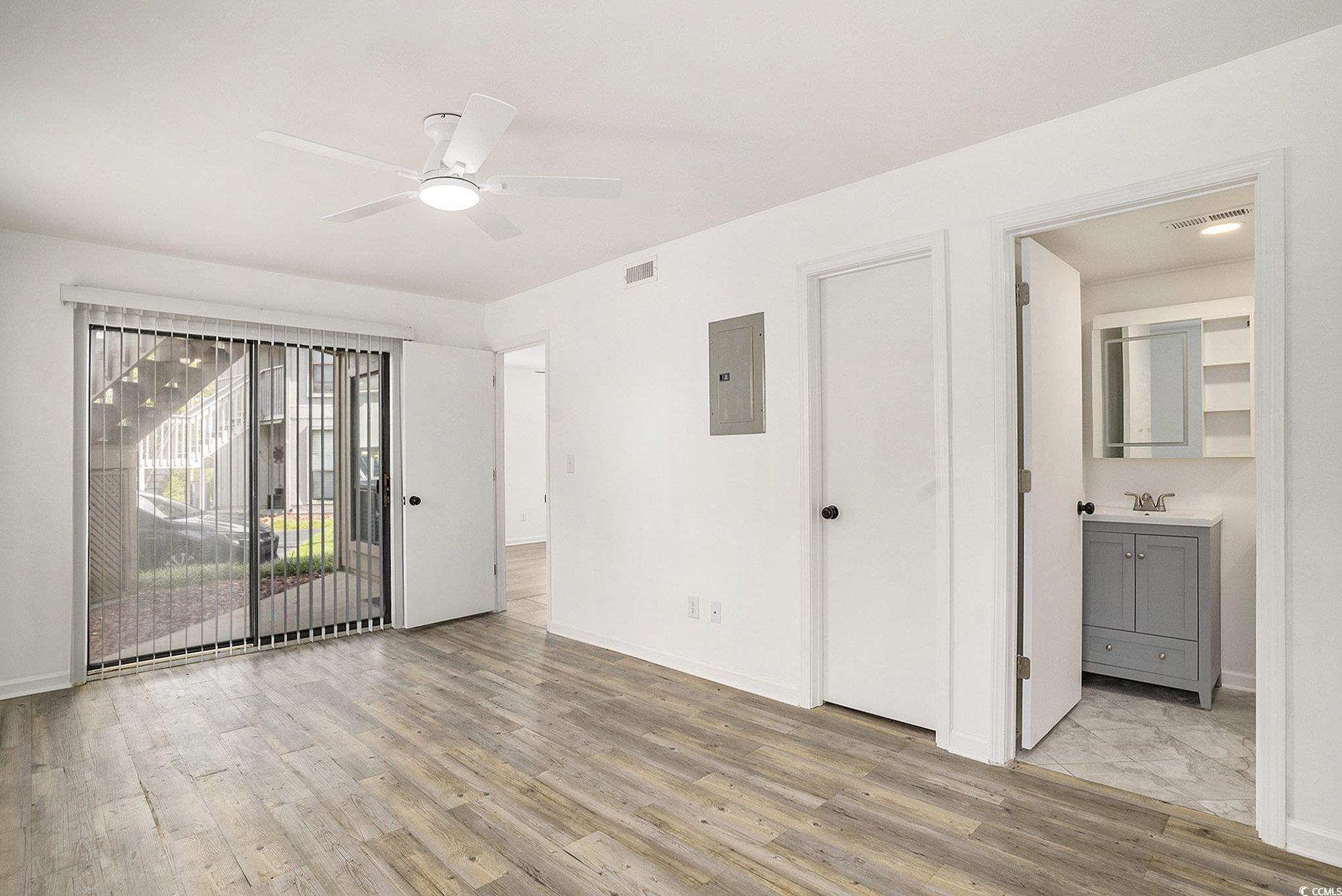Welcome to 418 Tree Top Ct, Unit C—an elegantly renovated ground-floor condo in the sought-after Island Green community, offering the perfect blend of modern comfort and coastal charm. This 1-bedroom, 1-bath unit has been thoughtfully upgraded with custom maple kitchen cabinets, epoxy countertops, under-cabinet LED lighting, stainless and black appliances, and a stylish designer sink and faucet. The bathroom has been transformed into a spa-like retreat with a new tub/shower combo, sleek vanity, luxury sink, toilet, and a backlit heated mirror. Throughout the home, you’ll find premium vinyl plank flooring, fresh paint, upgraded outlets and doorknobs, new blinds, and a newly installed HVAC air handler with remote-controlled ceiling fans for year-round comfort. The open living area leads to a peaceful front porch, perfect for relaxing mornings or evenings, while the spacious bedroom features both a bi-fold and walk-in closet for ample storage. With HOA fees covering water, cable, garbage, landscaping, and exterior maintenance, plus optional access to the community pool, this turn-key property is ideal for full-time living, a beach getaway, or a smart rental investment. Priced to sell and minutes from Surfside Beach, Murrells Inlet, and everything Myrtle Beach has to offer, this move-in-ready gem won’t last long.
