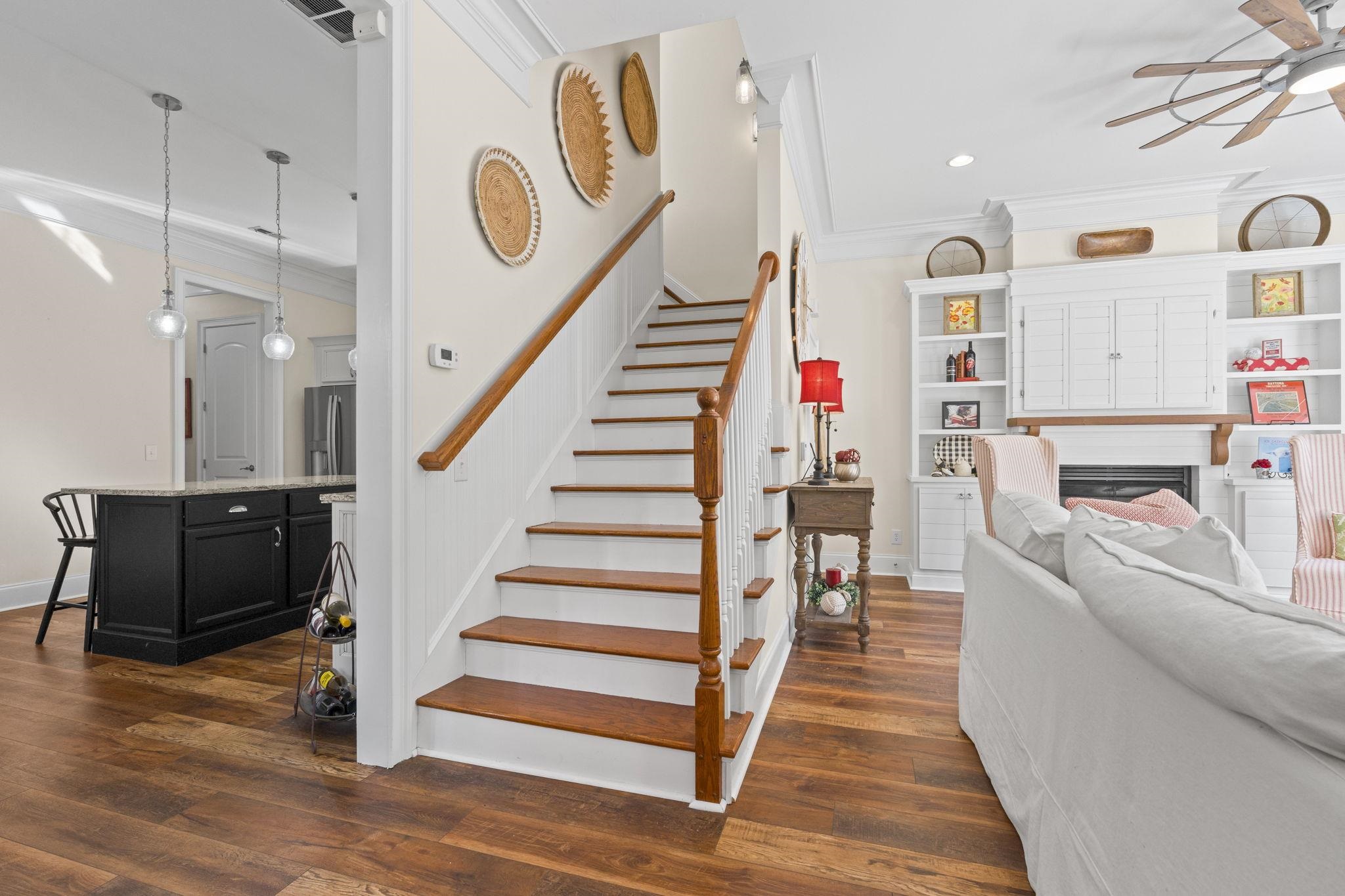 Click on virtual tour to view video:Charleston Landing:Beautiful Marshfront Community with amenities (Playground and Clubhouse w/Pool) Spacious Floor Plan.2 master suites -1 up and 1 downstairs. Fireplace upstairs and a fireplace downstairs. 2 car garage.Built ins with shiplap. This 2 story home has a Great Room downstairs 4 Bdrms, 4 baths with an additional flex room(Office). Casual Dining with an Eat in Kitchen. Side Porch. Walk in attic storage. Community offers catch and release fishing, Clubhouse, Playground and Pool, Side courtyard for entertaining w/ outdoor Bluetooth speakers to convey. Newly renovated and updated kitchen. Jetted tub upstairs. Move in Ready
