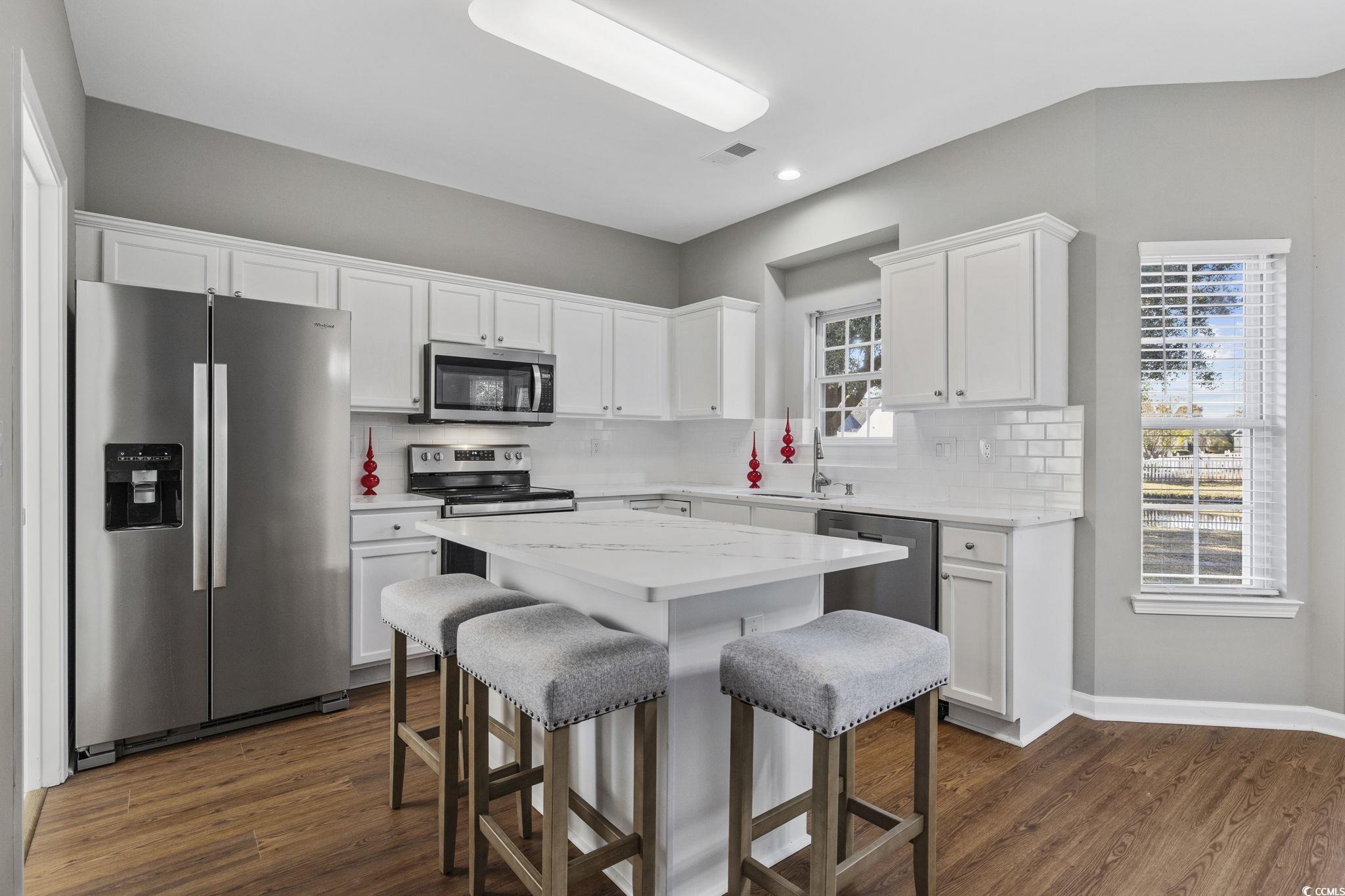 Welcome to 629 Slash Pine Ct, a beautifully renovated 4-bedroom, 2.5-bath Traditional home nestled in the sought-after Carolina Forest community. Situated on a spacious .33-acre lot, this move-in-ready gem offers serene pond views, mature trees, and access to excellent neighborhood amenities, including a community pool and playground — ideal for family living. Inside, you’ll find 1,938 heated sq ft of freshly updated space featuring Craftsman-style trim, brand new carpet and fixtures, and a neutral, modern color palette. The open-concept kitchen shines with white cabinetry, stainless steel appliances, a large island with seating, and direct access to the backyard — perfect for entertaining or quiet mornings by the water. Enjoy cozy evenings by the fireplace in the spacious living room or relax on the welcoming front porch. The primary suite features a tray ceiling, dual vanities, and a custom walk-in closet with built-ins. Located on a quiet cul-de-sac close to top-rated schools, shopping, and dining, this home combines space, style, and a prime Myrtle Beach location.