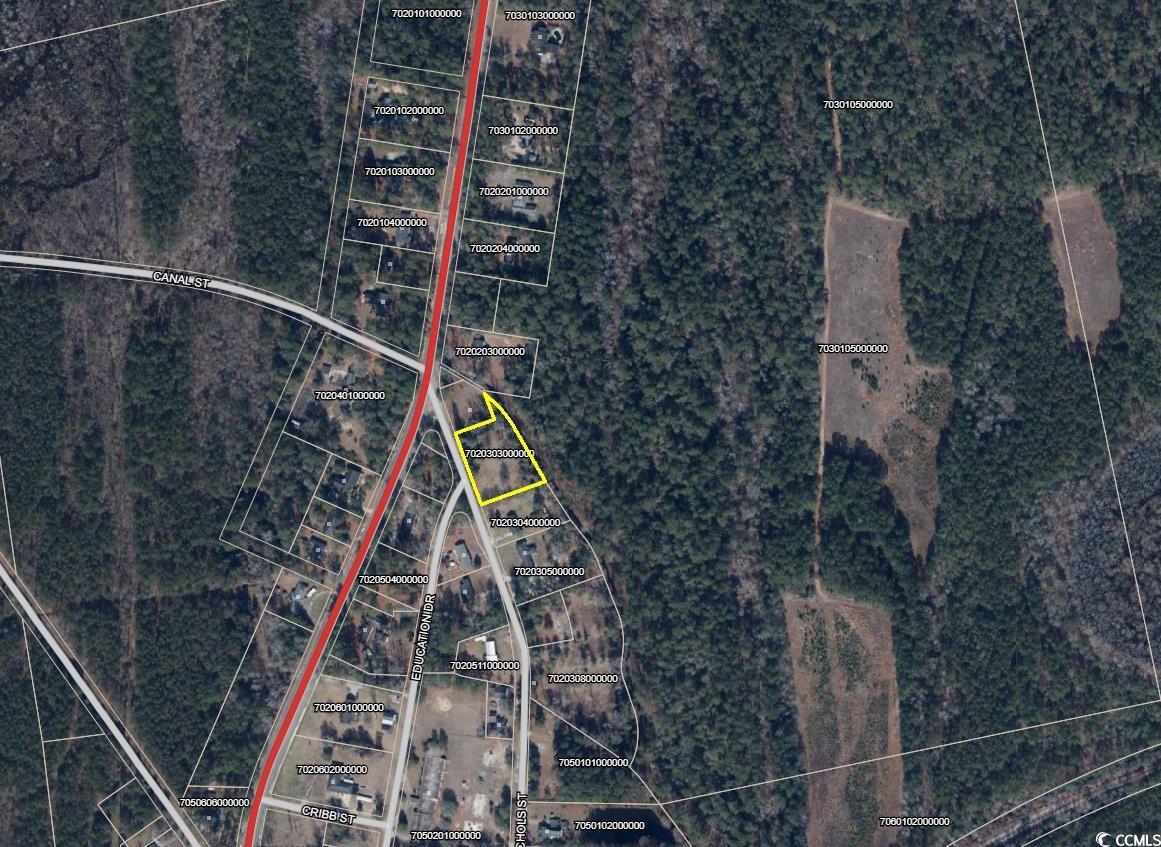 Corner lot that is partially cleared in a charming small town. Estimated at 1.13 of an acre. STICK BUILT ONLY! NO TINY HOMES! No HOA'S!!! No timeframe on building! Water and sewer run on that road. Buyer will have to pay tap in fees. You are an estimate of 50 minutes away from North Myrtle Beach, SC and all that it offers. Which means you are tucked away from all the beach traffic, but close enough if you want to visit anytime. Buyer is responsible for all measurement verifications.