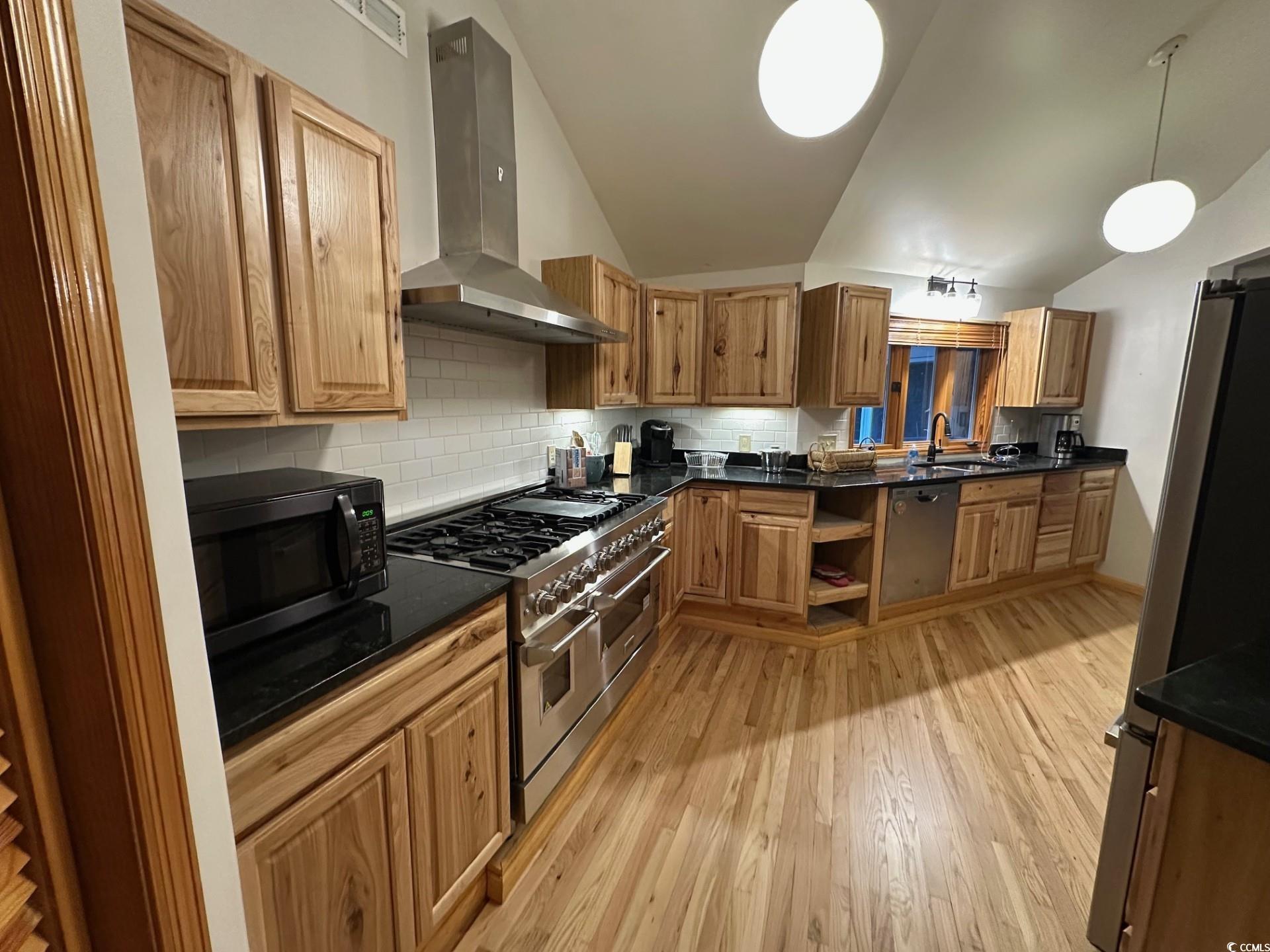 Range, Dishwasher, Garbage Disposal, Refrigerator, Microwave, Pantry, Double Oven, Range Hood, Stainless Steel Apps., Solid Surface Countertops