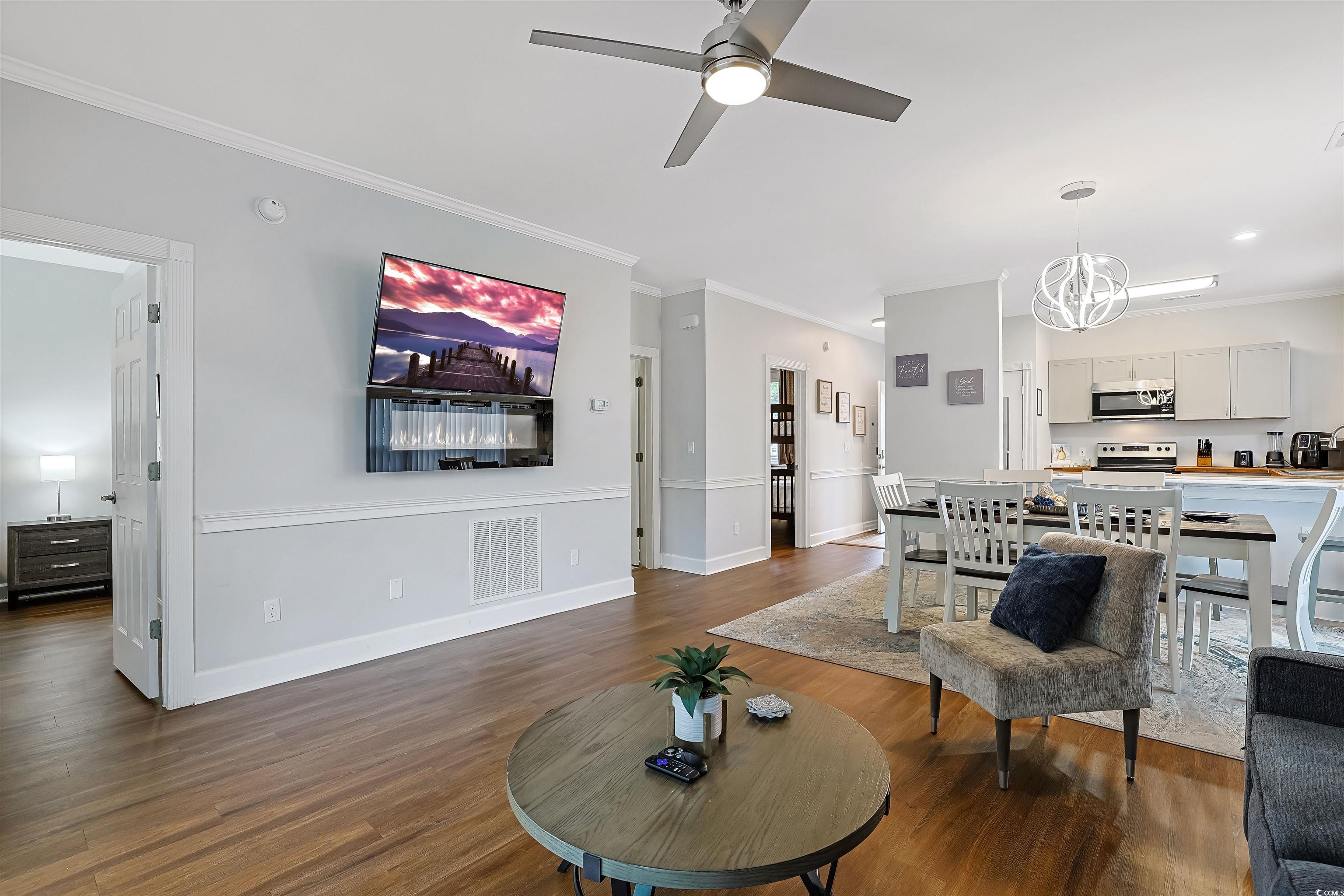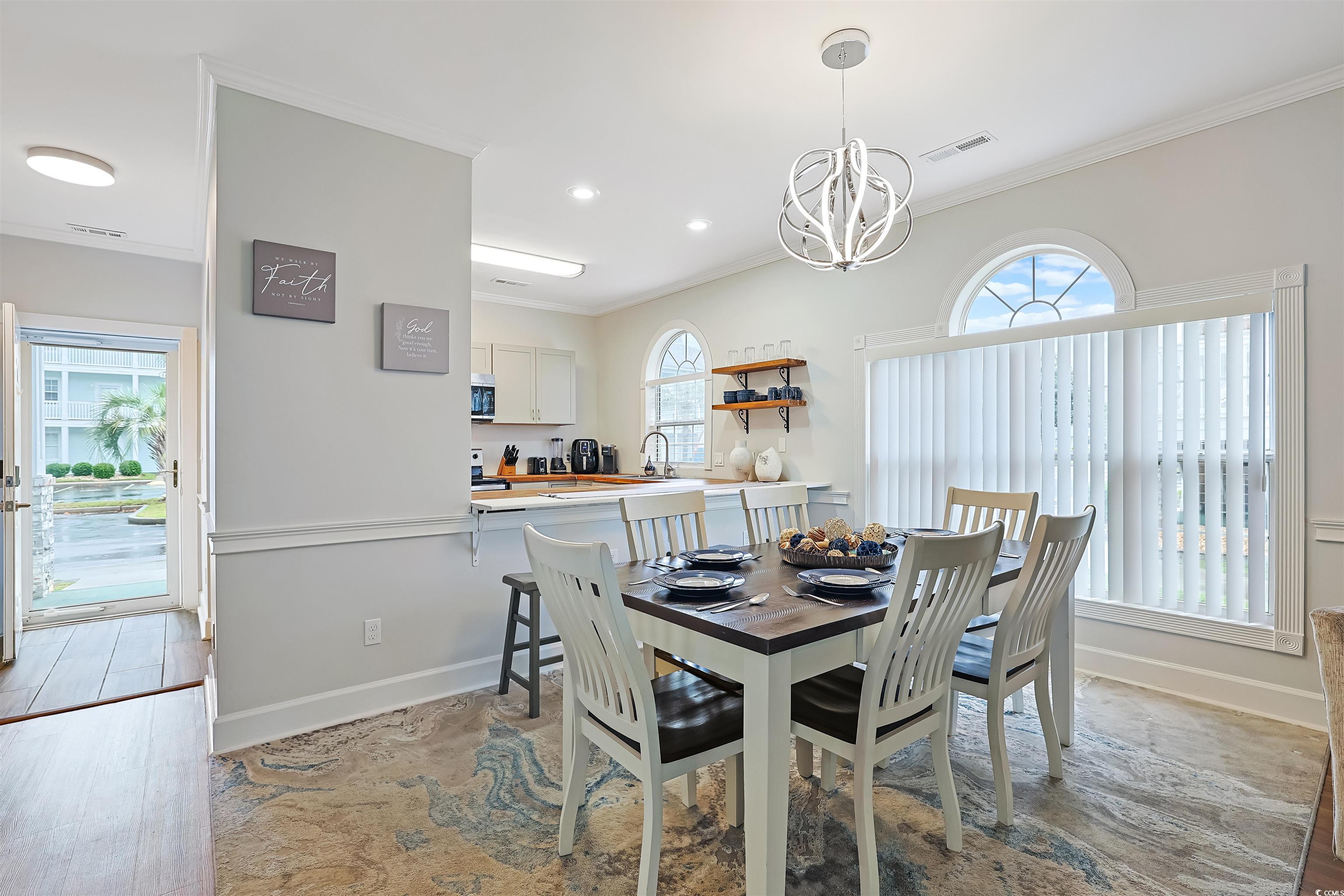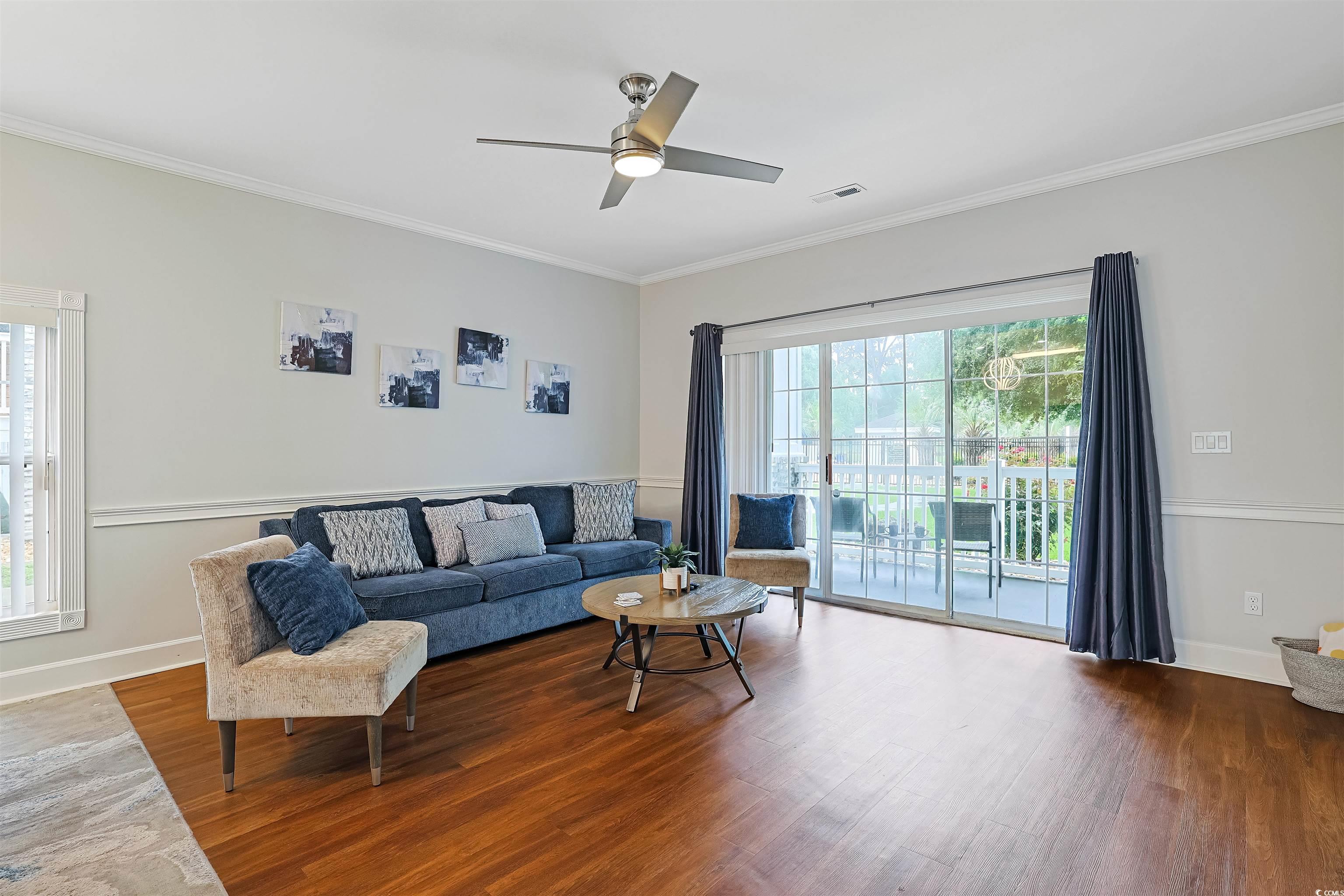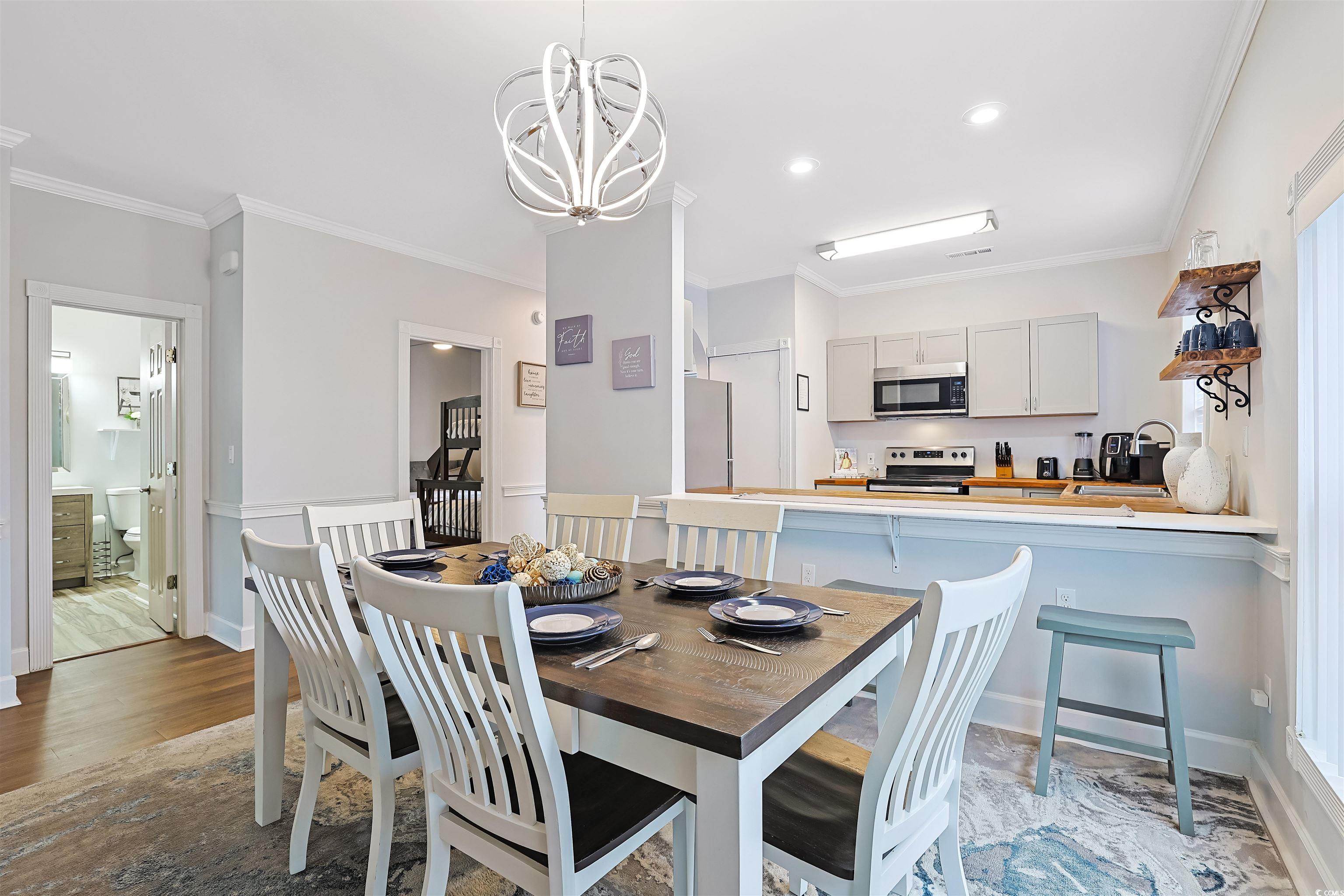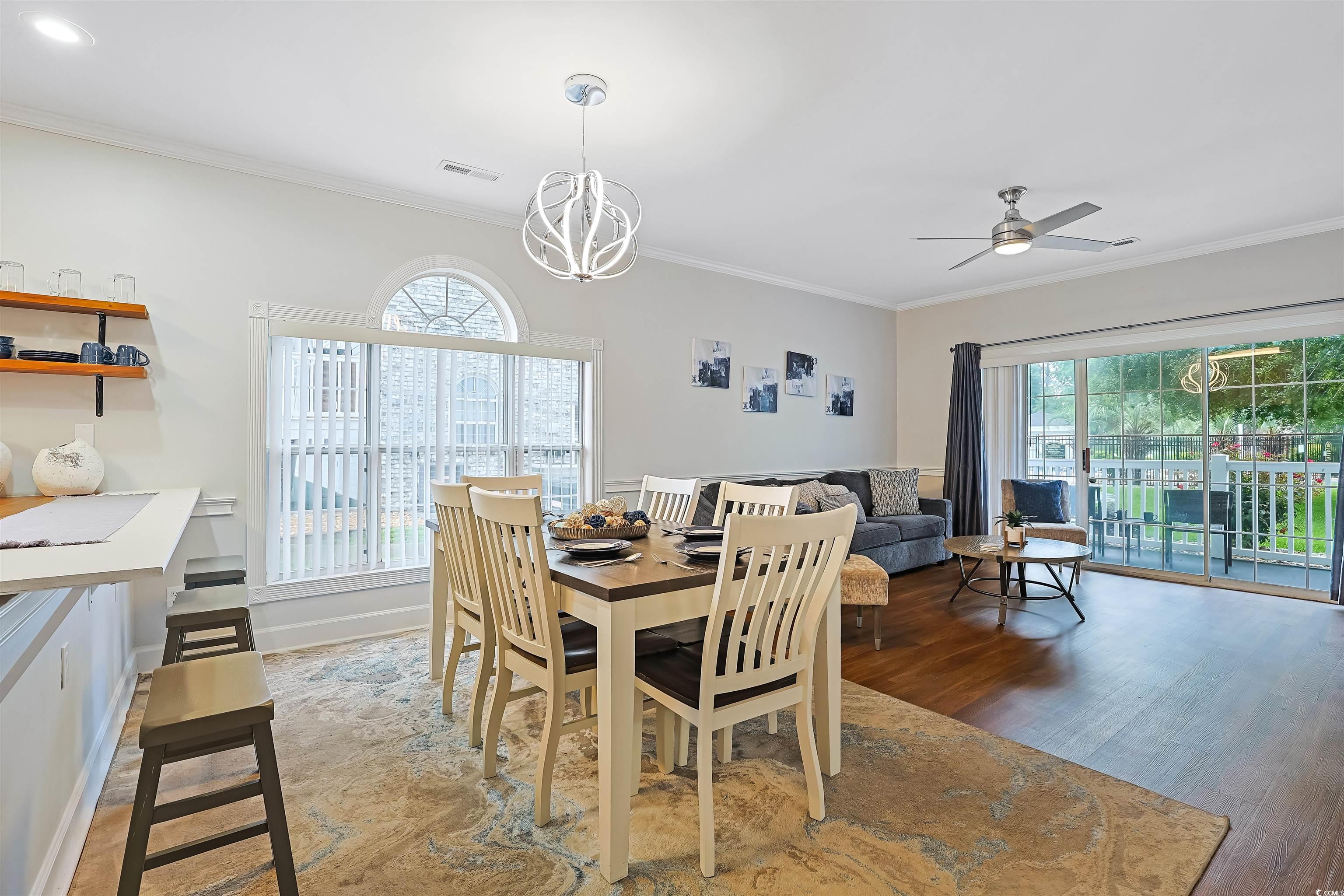 Presenting this incredible totally upgraded 2 bedroom 2 bath first floor condo located in the desirable Magnolia Place complex. This premium end unit features abundance of natural light, wood look LVP & tile flooring, 9 foot smooth flat ceilings with crown moulding, stylish furnishings, palladium windows, elegant chair railing, ceiling fans, classic living/dining room combo that showcases a sliding glass door that opens up to the relaxing balcony looking out to the sparkling pool. The kitchen is equipped with a stainless steel appliance package, wood counter tops, ample cabinet spaces, a practical pantry, along with an inviting breakfast bar. The primary bedroom room has an access to the relaxing balcony, a ceiling fan, private access to the primary bath hosting a single sink vanity, a comfort station, and a deluxe step-in shower. This delightful condo is completed with an additional bedroom, a full guest bath, and an extra storage closet. This condo affords you easy access to the beach and golfing along with all of the other activities and happenings in Myrtle Beach along with fun eateries, award winning off-Broadway shows, public fishing piers, and intriguing shopping adventures along the Grand Strand. Conveniently located to your everyday needs, including grocery stores, banks, post offices, medical centers, doctors’ offices, and pharmacies.