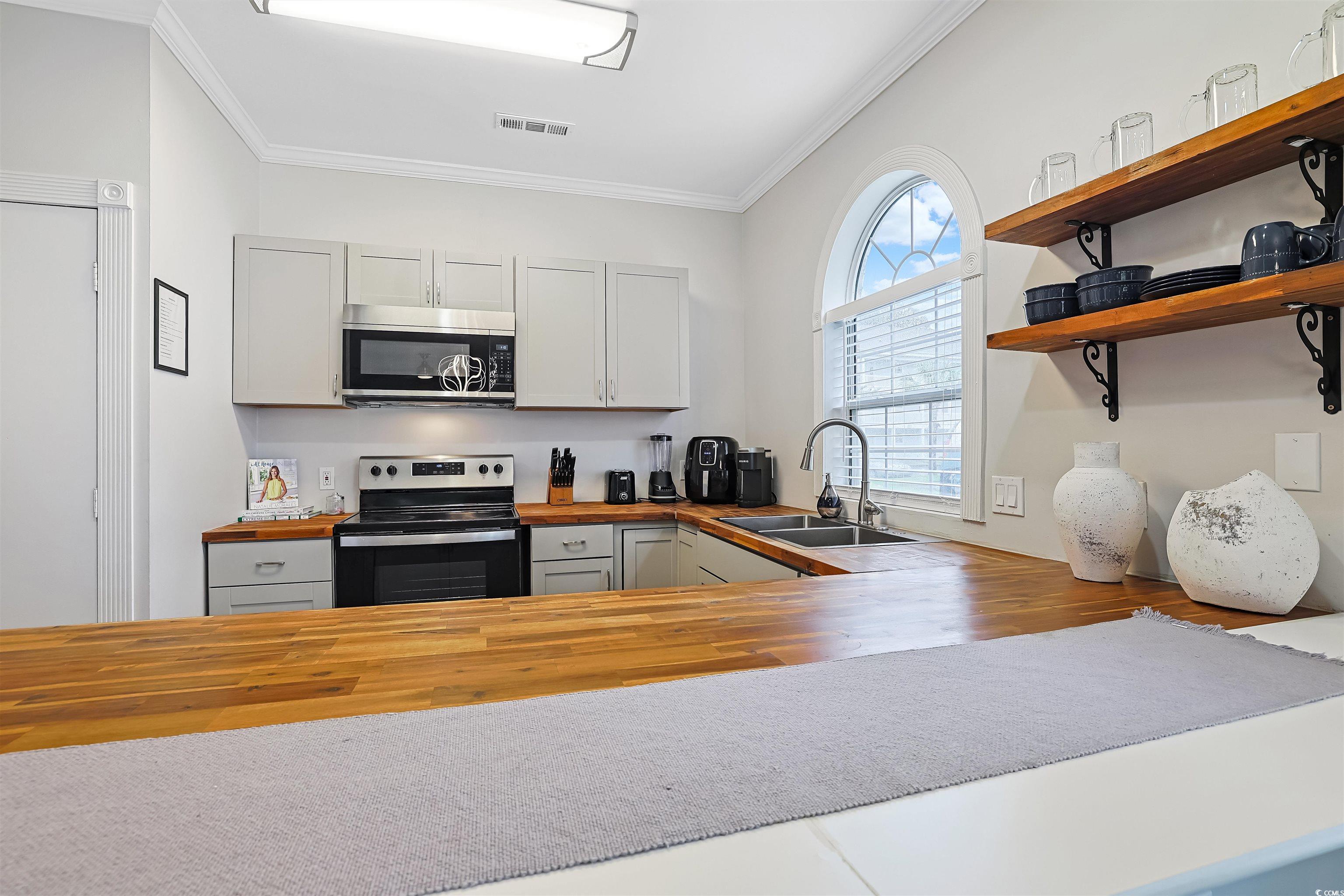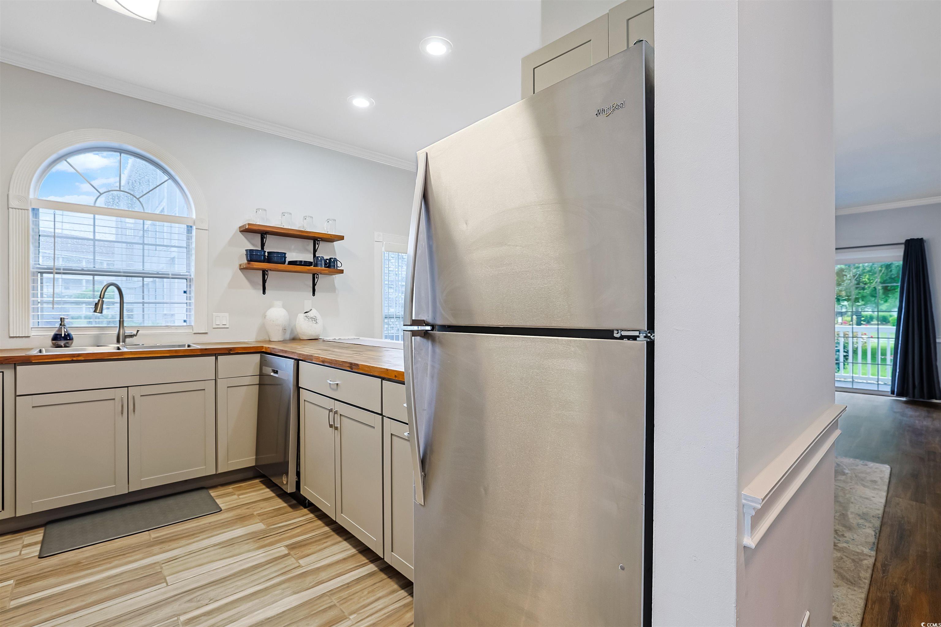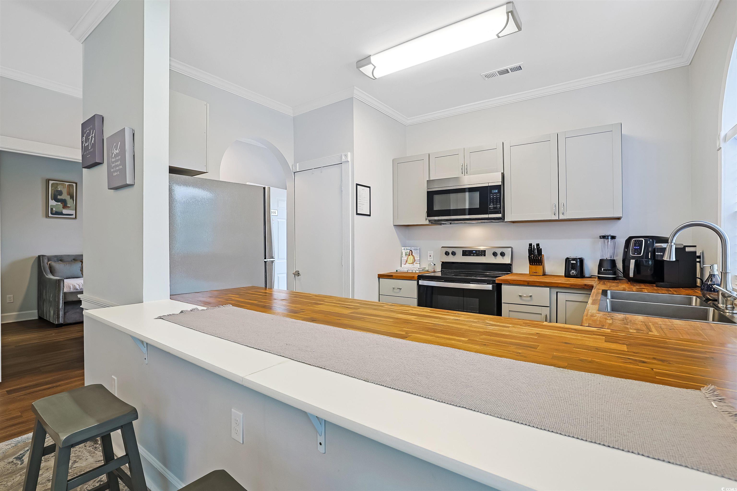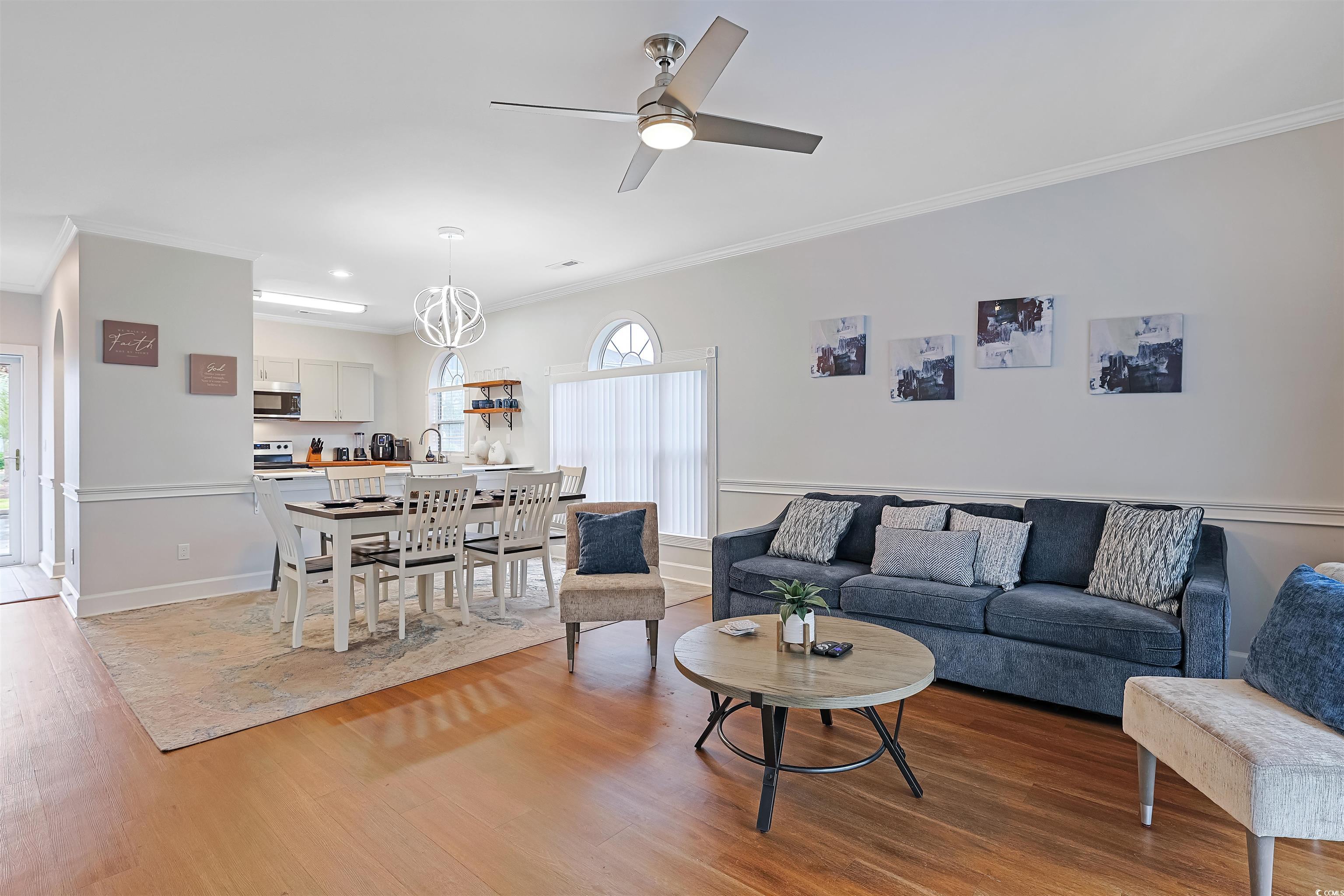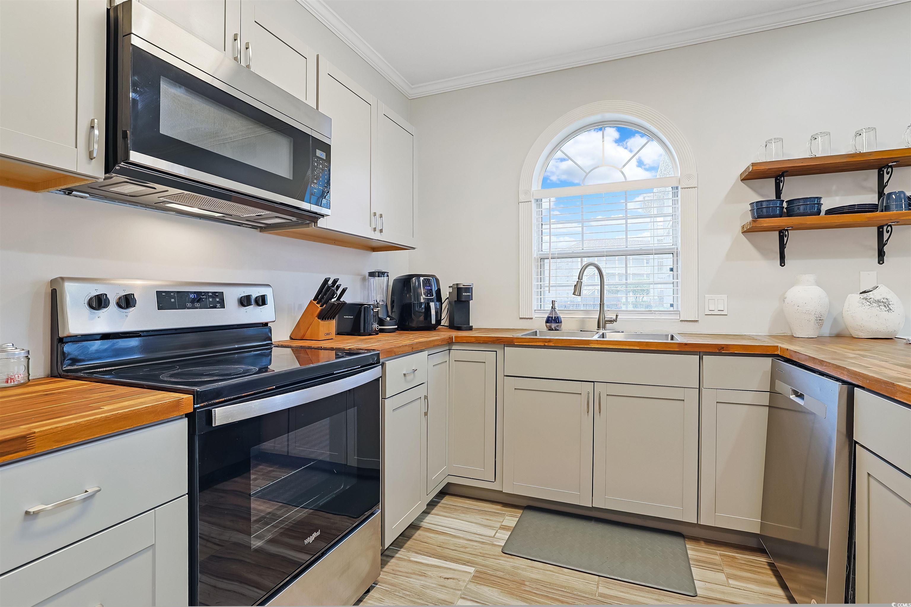 Presenting this incredible totally upgraded 2 bedroom 2 bath first floor condo located in the desirable Magnolia Place complex. This premium end unit features abundance of natural light, wood look LVP & tile flooring, 9 foot smooth flat ceilings with crown moulding, stylish furnishings, palladium windows, elegant chair railing, ceiling fans, classic living/dining room combo that showcases a sliding glass door that opens up to the relaxing balcony looking out to the sparkling pool. The kitchen is equipped with a stainless steel appliance package, wood counter tops, ample cabinet spaces, a practical pantry, along with an inviting breakfast bar. The primary bedroom room has an access to the relaxing balcony, a ceiling fan, private access to the primary bath hosting a single sink vanity, a comfort station, and a deluxe step-in shower. This delightful condo is completed with an additional bedroom, a full guest bath, and an extra storage closet. This condo affords you easy access to the beach and golfing along with all of the other activities and happenings in Myrtle Beach along with fun eateries, award winning off-Broadway shows, public fishing piers, and intriguing shopping adventures along the Grand Strand. Conveniently located to your everyday needs, including grocery stores, banks, post offices, medical centers, doctors’ offices, and pharmacies.