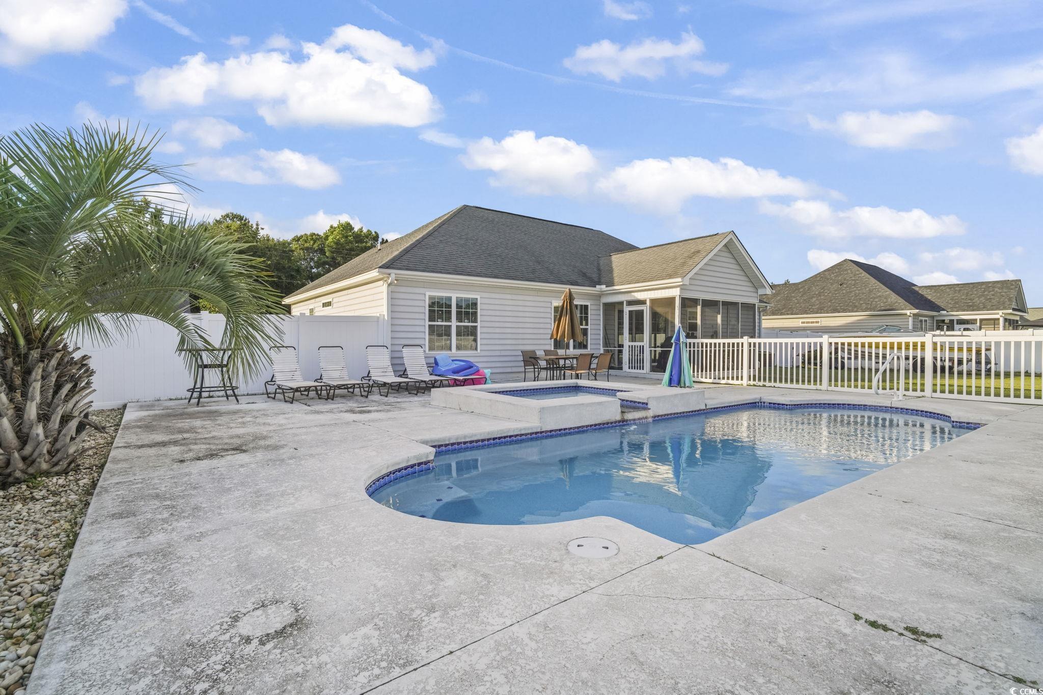Welcome to this one-of-a-kind property in the desirable Sedgefield community of Conway?the only home offering a double lot, grandfathered in and fully fenced for ultimate privacy and versatility. The additional lot behind the home features a 6-ft privacy fence running the full length of the property, creating the perfect space for storing boats, RVs, ATVs, or extra vehicles. A dedicated storage shed with its own half bathroom and outside access adds even more convenience, once used as golf cart parking. Step outside to your private oasis with a beautiful in-ground saltwater pool (up to 5 ft deep) complete with a connected kiddie pool that cascades into the main pool. The pool is equipped with a saltwater pump system and water heater, making it perfect for year-round enjoyment. Inside, this 4-bedroom, 2-bathroom home offers a spacious layout, a freshly painted interior (2024), and new flooring in the living room. The 2-car garage provides plenty of storage, while the home?s excellent maintenance makes it move-in ready. For added peace of mind, the seller is including a 12-month home warranty covering many key features for the new owner. This is more than just a home?it?s a lifestyle. With its unique double lot, storage options, and private pool retreat, this property is truly unlike anything else in the neighborhood. Don?t miss your chance to own this rare gem in Sedgefield!