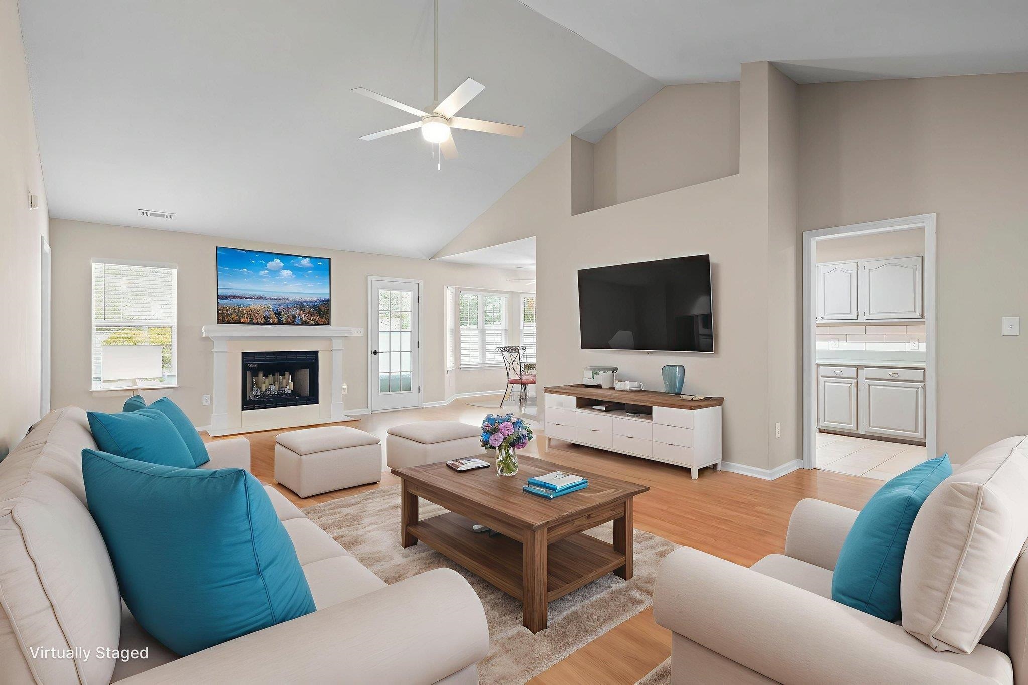 Ceiling Fan, Fireplace, Vaulted/Cathedral Ceiling