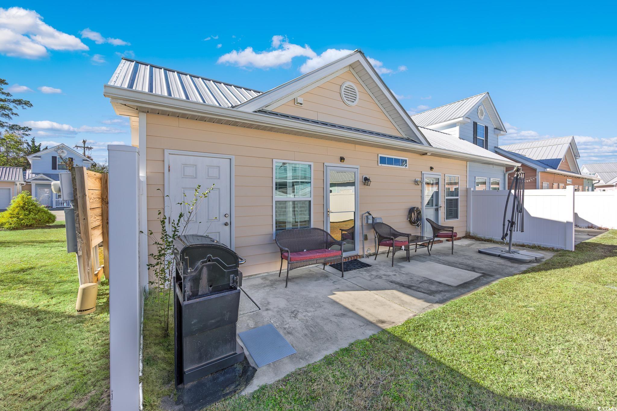 THE LOWEST SALES PRICE IN THE COMMUNITY AND YET ANOTHER PRICE IMPROVEMENT! This delightful one level, 3-bedroom, 2-bath, 1 car garage beach getaway located east of Highway 17 Business in Cottages at Seventh is just a quick golf cart ride to the sandy shore in the Ocean Drive section of North Myrtle Beach. This quaint low-maintenance bungalow is easy to love as a full-time home, beach retreat, or investment property. Inside, you’ll find a bright, open layout with vaulted ceilings and laminate flooring in the main living areas, tile in the kitchen, laundry and baths, and cozy carpeted bedrooms. The kitchen shines with granite countertops and stainless steel appliances—ready for everything from quick snacks to coastal feasts. Barely used full size washer and dryer convey as well as all kitchen appliances and HVAC was very recently replaced. Plantation shutters throughout add a timeless, coastal touch. Relax on the welcoming front porch with your morning coffee or host cookouts on the back patio which you can access from both the primary and guest bedroom. A one-car garage and large outdoor storage room off the back of the home make beach living a breeze to park your golf cart and hang your sandy lounge chairs. Just minutes from shopping, dining, entertainment, and the beach—this is truly North Myrtle Beach relaxed living! Call for your private showing today! *Some listing photos have been virtually staged. All information, measurements and square footage are approximate, deemed reliable, but not guaranteed. Buyer or buyer's representative is responsible for verification. Preferred Lender information available, be sure to ask your Realtor for details.