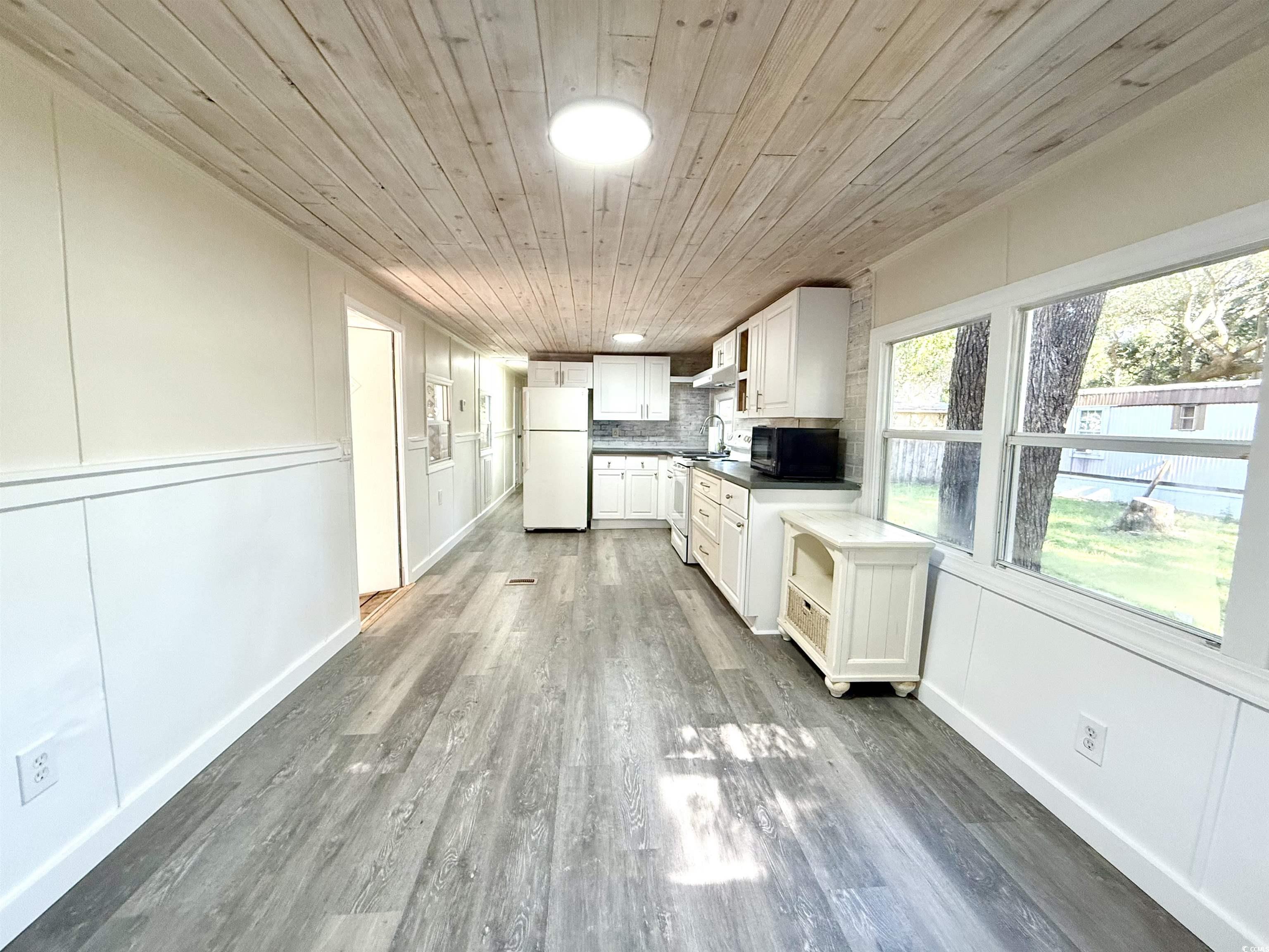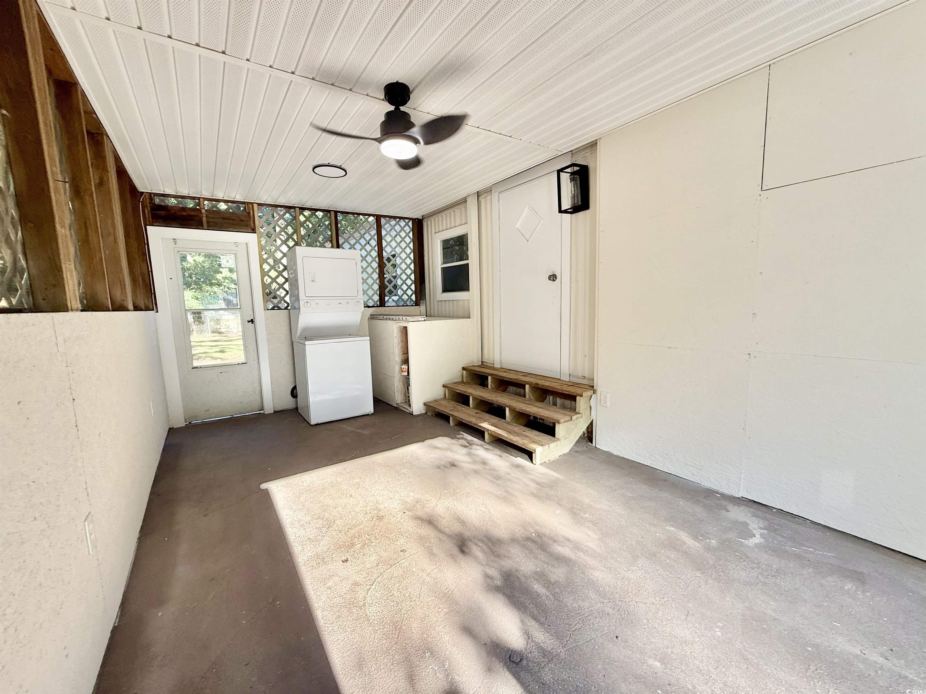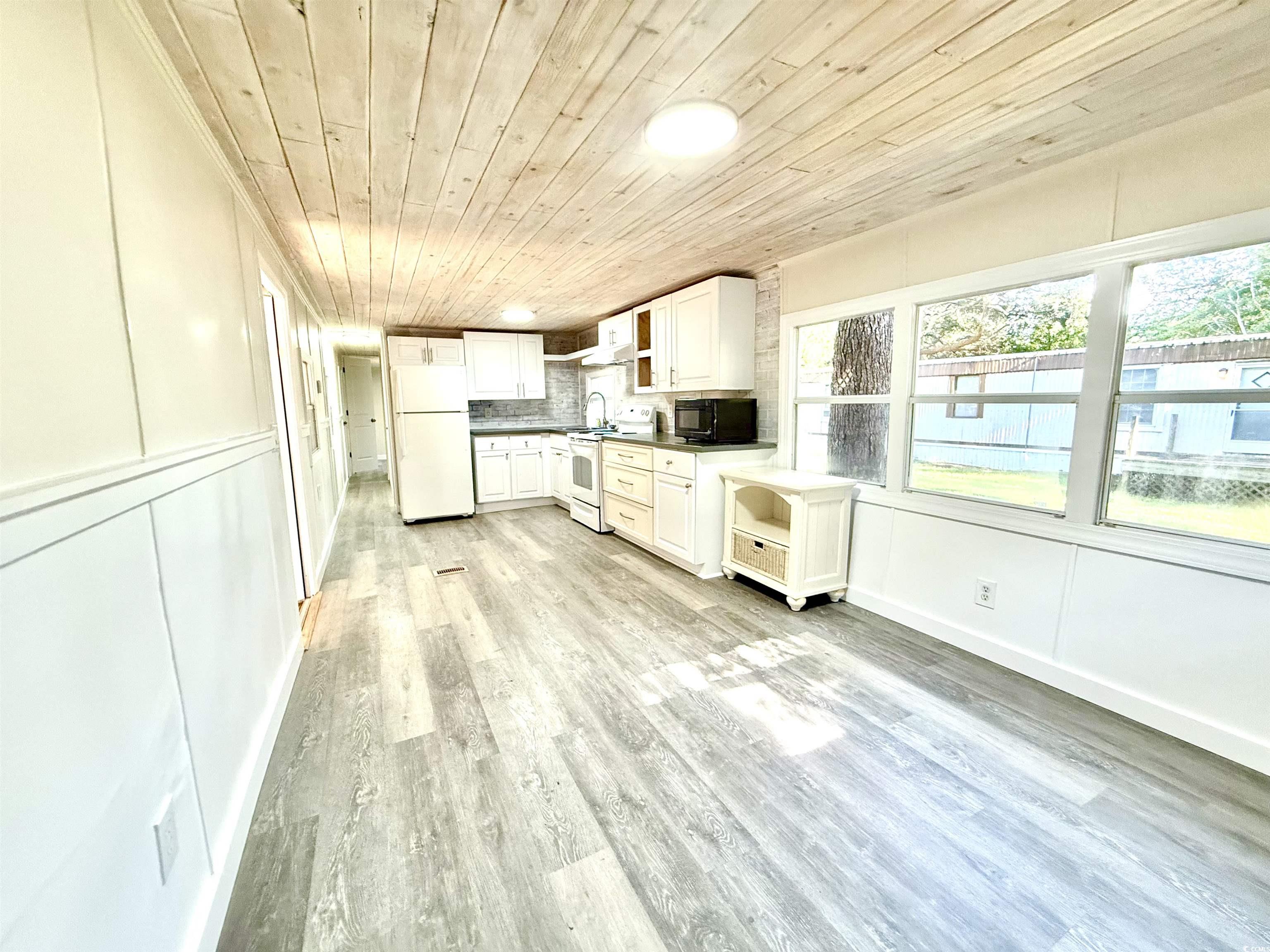 Discover affordable coastal living in this inviting 2 bedroom, 1 bath manufactured home. Thoughtfully updated with fresh finishes and modern touches, it’s the perfect place to relax, unwind, and enjoy life near the beach. Inside you’ll find brand new flooring throughout and stylish shiplap ceilings that add character and warmth. The bright, open living room flows into a refreshed kitchen featuring crisp white cabinetry with a blend of open and closed shelving, perfect for both storage and display. Convenience is built right in with a washer and dryer included, and there’s plenty of room for your vehicles with four car parking plus dedicated golf cart space. Out back, a concrete slab is already in place, ready for your future shed or extra storage. Located close to shopping and dining, and close enough to enjoy the sand and surf anytime, this home offers the ideal combination of comfort, convenience, and affordability. Whether you’re looking for a full time residence or a weekend retreat, this property checks all the boxes.