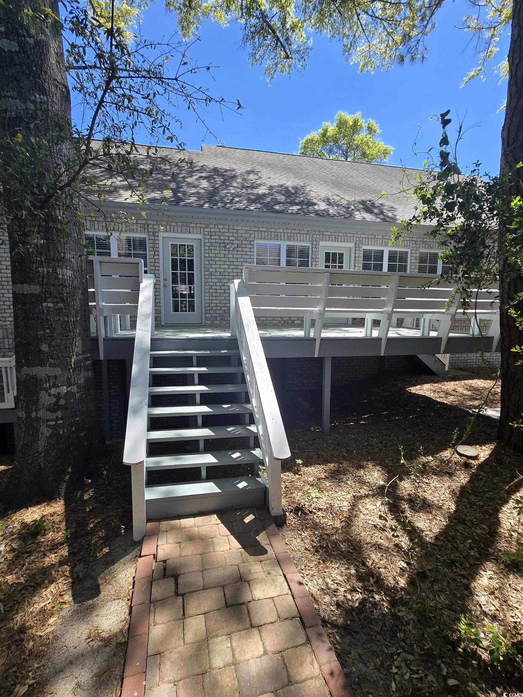 3BR / 2BA plus office - remodeled brick elevated home one block to the ocean in the Tilghman Estates section of NMB and 5 blocks to Main Street. Home features split bedroom plan with two guest bedrooms and hall bath on one end and open kitchen / dining with great room in the middle - master suite with walk in shower and laundry to the other end - office with door and egress window ( no closet) could be used as 4th sleeping room -Home has been updated with new flooring, paint, cabinets, countertops, appliances, etc - oversized two car garage under home with interior stairs - large covered front porch with peak view of ocean and open deck off the rear. No HOA or restrictions.