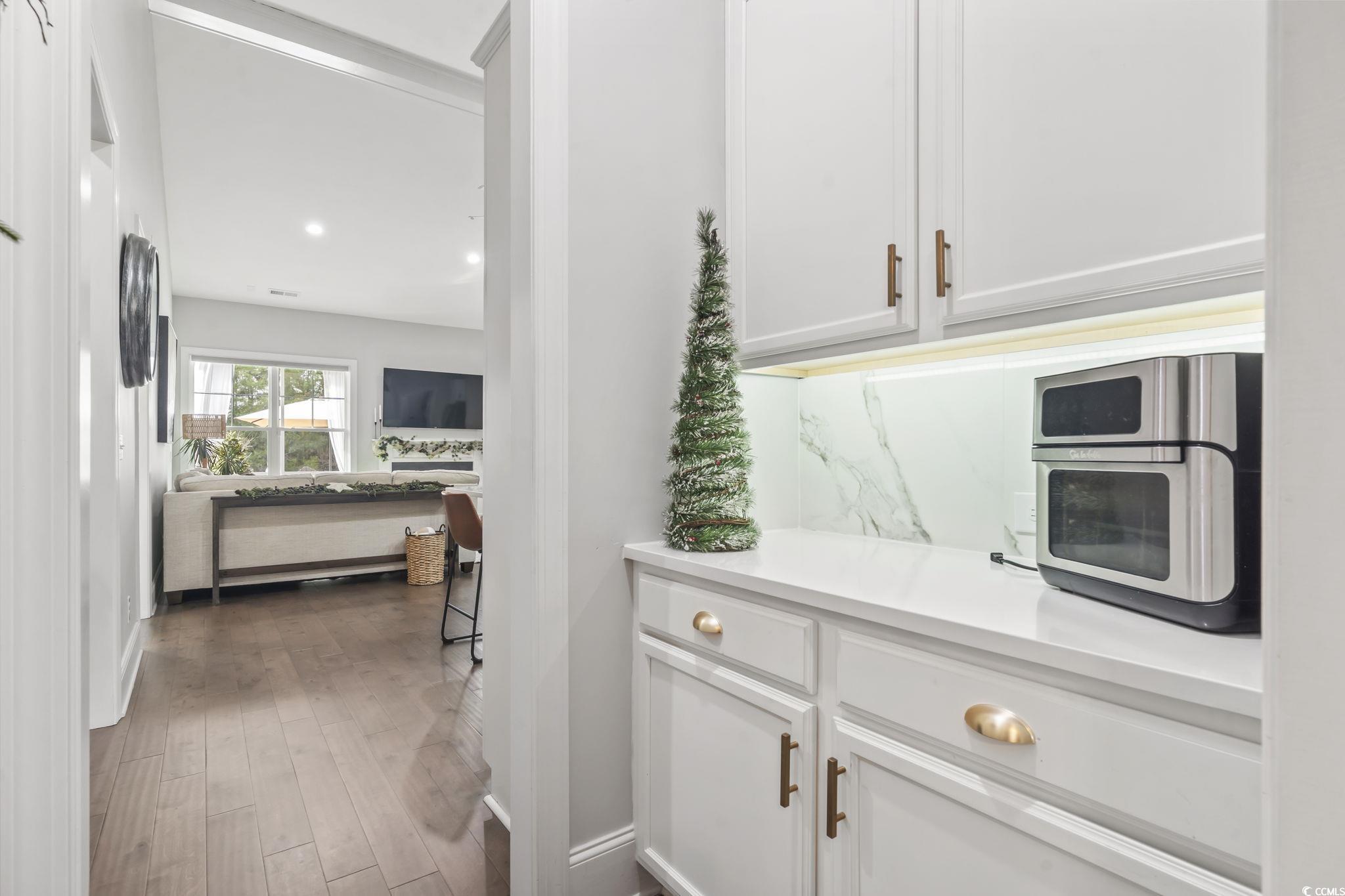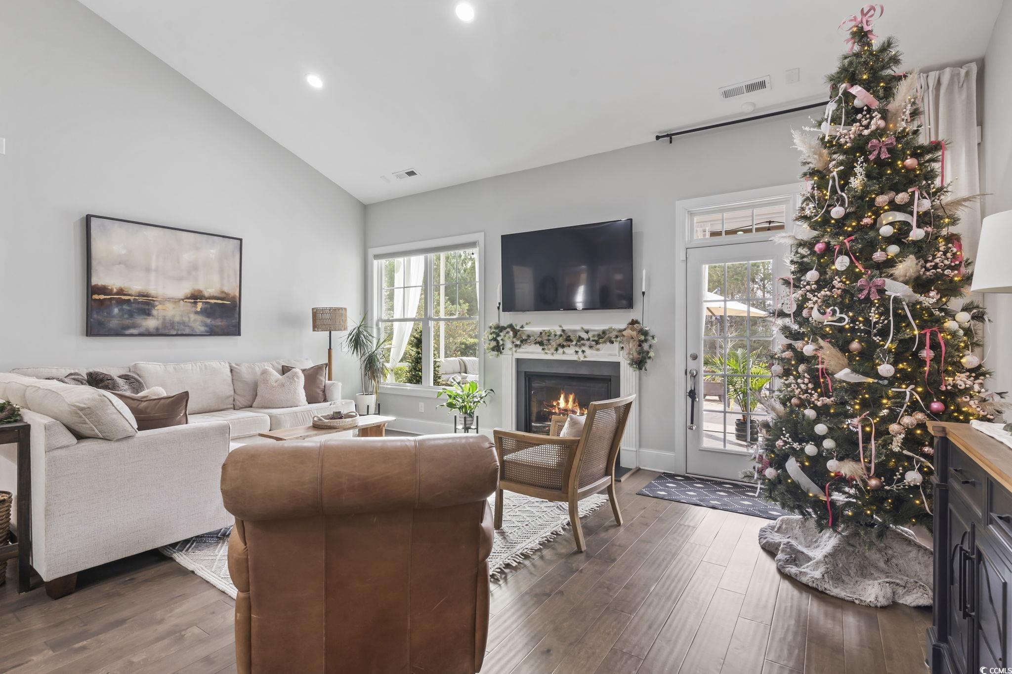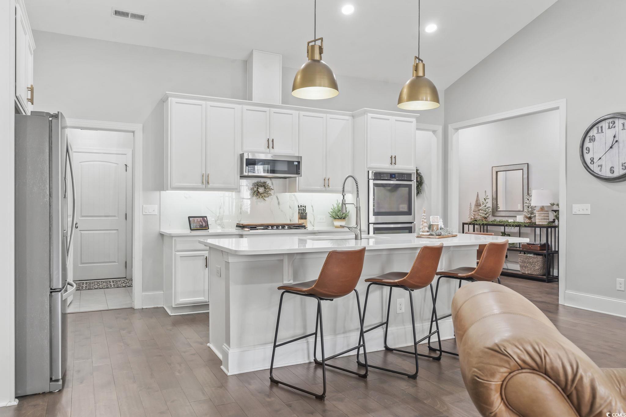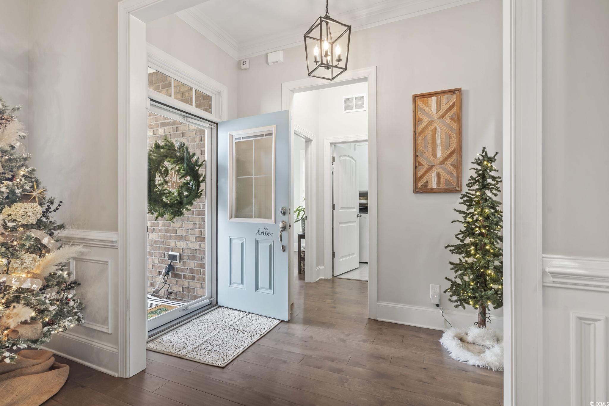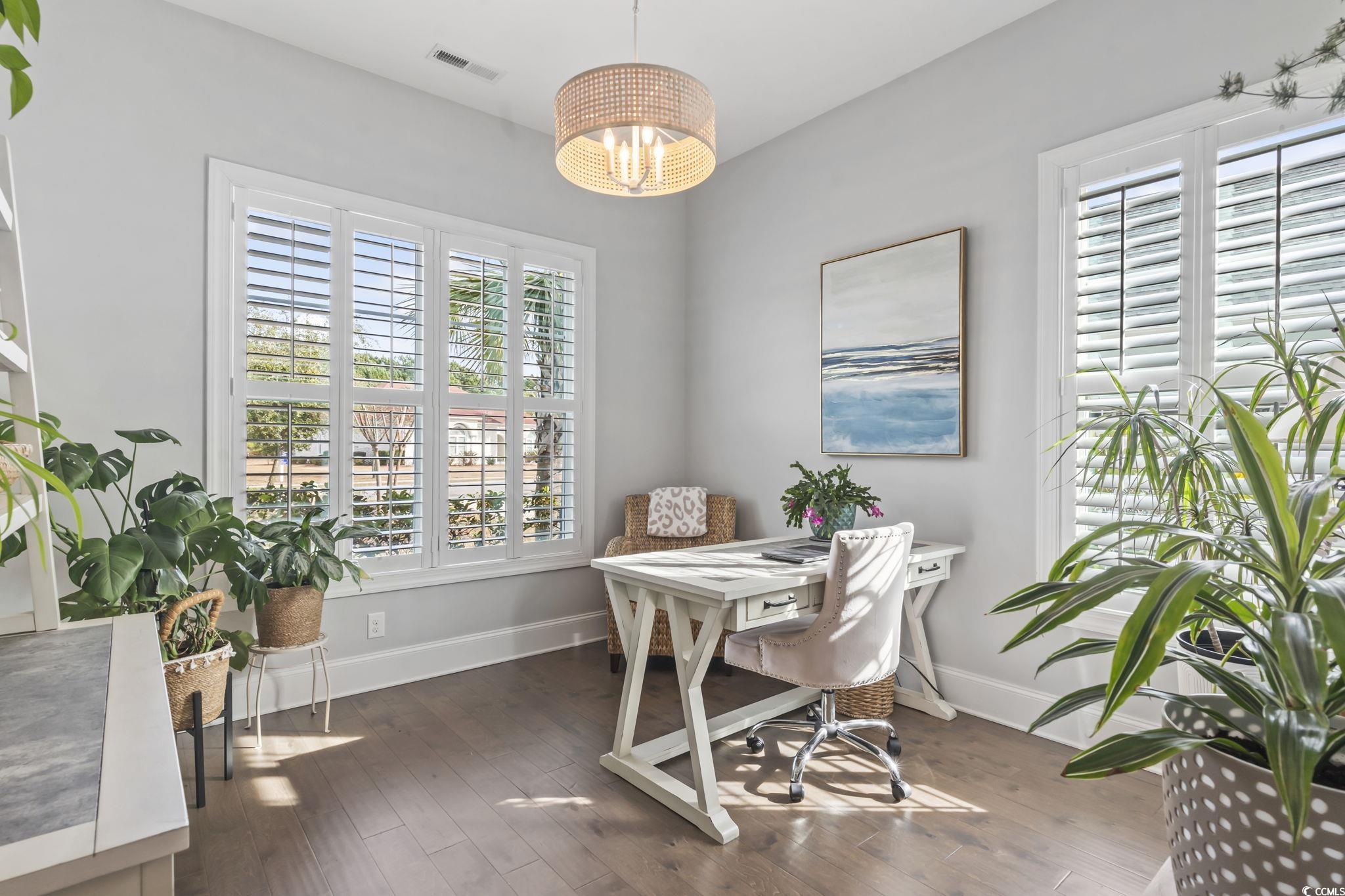 Looking for the perfect home in Wild Wing Plantation? Look no further! This stunning property delivers exceptional curb appeal from the moment you pull into the driveway. Mature landscaping, an irrigation system, custom paver-lined beds, walkway, and driveway, plus beautifully designed landscape and pathway lighting create a breathtaking first impression—day or night. The extended driveway has also been professionally sealed for UV protection and longevity. Step inside and be wowed by the grand entryway, 10’ ceilings, and wide-plank flooring that carries through the main living areas. To your right, the freshly painted formal dining room features elegant wainscoting, a coffered ceiling, and double front windows with custom shutters. (All front-facing windows—garage included—feature the same custom shutter upgrade.) The heart of the home boasts an impressive open floor plan with cathedral ceilings, filling the space with natural light. The split-bedroom design offers privacy for guests and family, with two spacious guest bedrooms plus an additional front room that can serve as a home office or fourth bedroom. The gourmet kitchen is a true showstopper—complete with stainless steel appliances, natural gas cooktop, double oven, huge walk-in pantry, and an oversized island with seating for six. Recent upgrades include brand-new quartz countertops, new deep sink and faucet, porcelain tile backsplash, and updated the white cabinetry with gold hardware. The living room is warm and inviting with a gas fireplace and double windows and doors that brighten the entire space. Retreat to the incredible master suite, featuring freshly painted tray ceilings, new board and batten accent wall and a luxurious ensuite.The ensuite features granite counters, dual sinks, walk-in tile shower, and a custom walk-through closet that connects directly to the laundry room—an amazing convenience you'll love. The oversized 2-car garage provides ample storage with shelving above the door, floored attic space, additional outlets, finished floor and an EV charger. Outdoor living is where this home truly shines. Enjoy a relaxing covered front porch, or unwind on the tiled, screened-in back porch with custom shades. Step down to a 20x20 custom paver patio overlooking the serene lake—perfect for entertaining or simply taking in the view. The fully fenced backyard allows easy access for kayaking right from your property, and motorized boats can be launched from the community storage area. Located in the private, amenity-rich community of Wild Wing Plantation, residents enjoy tennis and pickleball courts, a resort-style pool with waterslide, playground, basketball court, and access to a beautiful golf course. All of this just minutes from the Grand Strand’s premier dining, shopping, golf, entertainment, and, of course, the beach. Don’t miss this one—homes like this don’t last long! (All measurements and square footage are approximate and not guaranteed.)